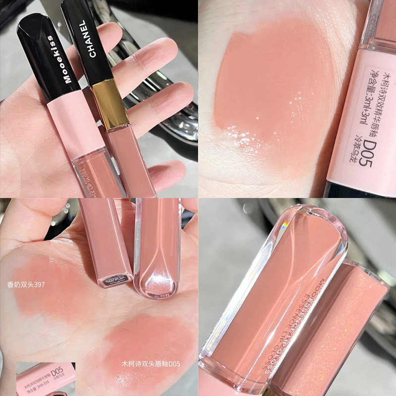 📚 Mooekiss木柯诗双头唇釉女镜面水光精华不易沾杯口红显白哑光雾面