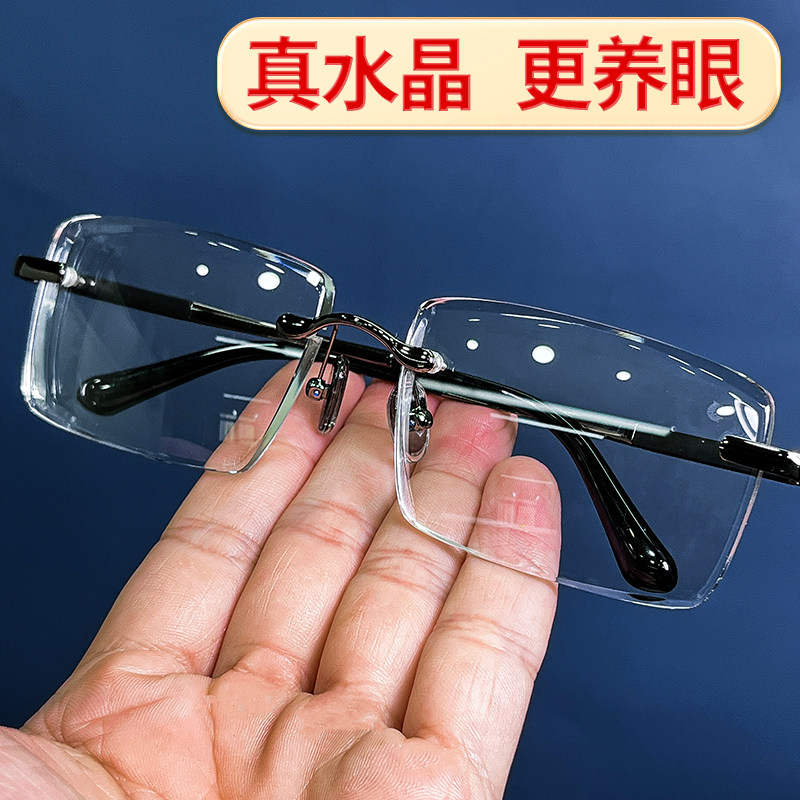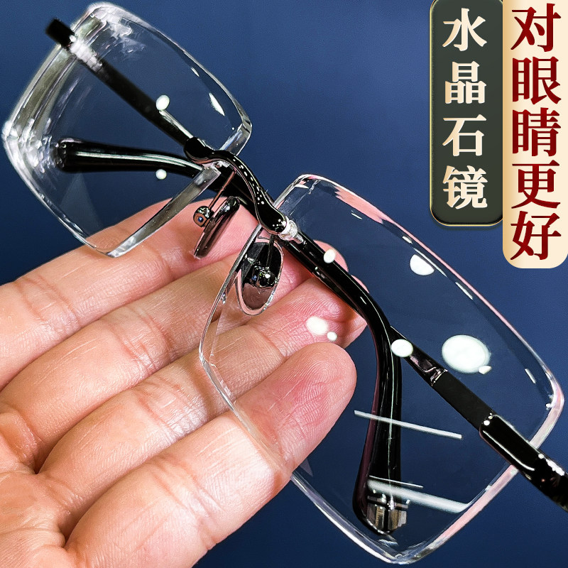 📚 高档白水晶眼镜水晶老花眼镜高清水晶石镜无框显年轻清凉润目养眼