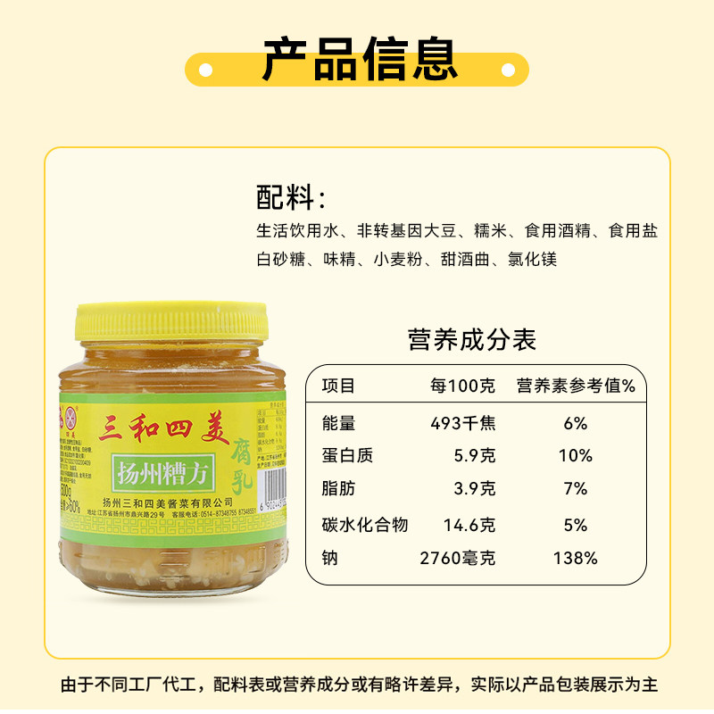 📚 三和四美糟方腐乳火锅蘸料红方腐乳下饭菜扬州特产瓶装下饭菜