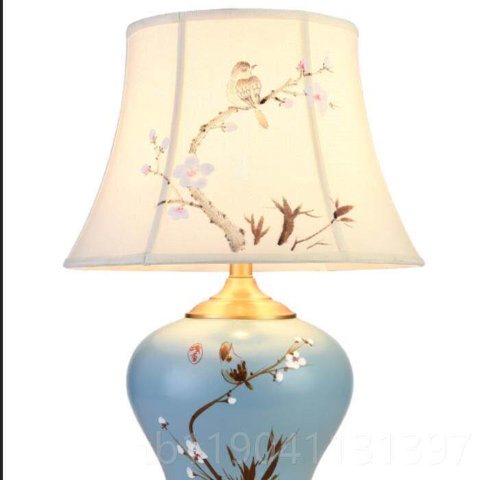 📚 正品新中式景德瓷台灯陶全铜主室床头手绘卧梅花镇客厅沙发角几古