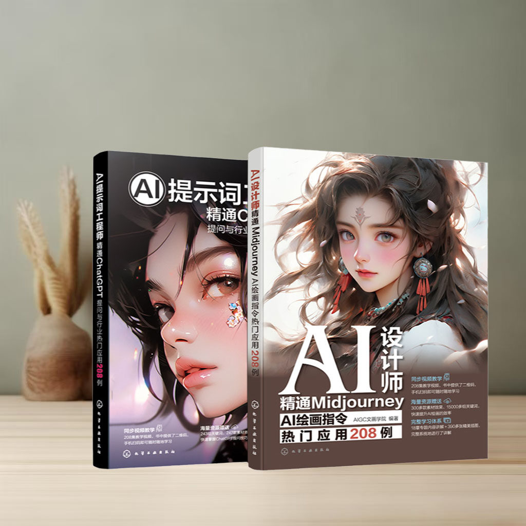 📚 2册 AI提示词工程师 精通ChatGPT 提问与行业热门应用208例 AI设计师 精通Midjourney AI绘画指令热门应用208例 AI入门学习赠视频