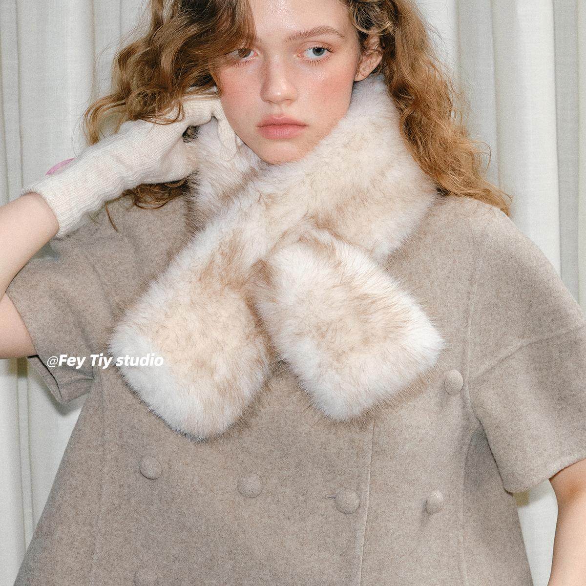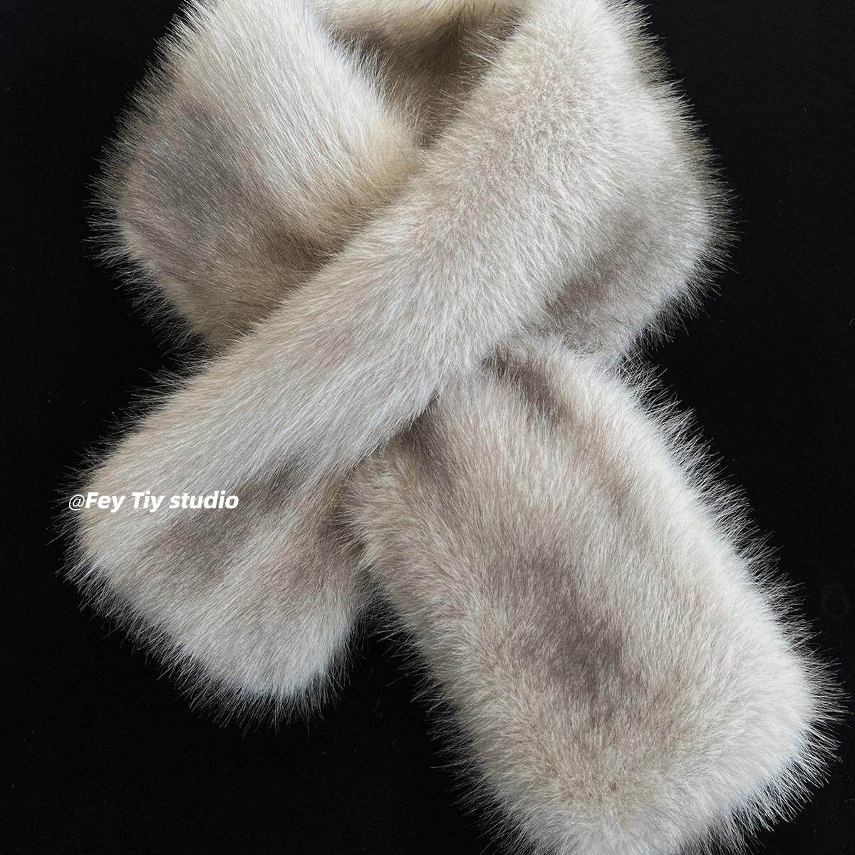📚 feytiy 环保皮草毛尖染色交叉毛毛冬季仿貂毛小围巾保暖围脖毛领