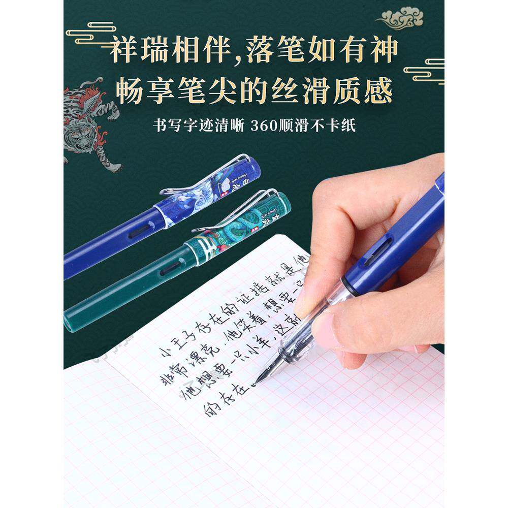 📚 国潮国风钢笔小学生专用练字四大神兽钢笔三年级可擦替换墨囊蓝黑