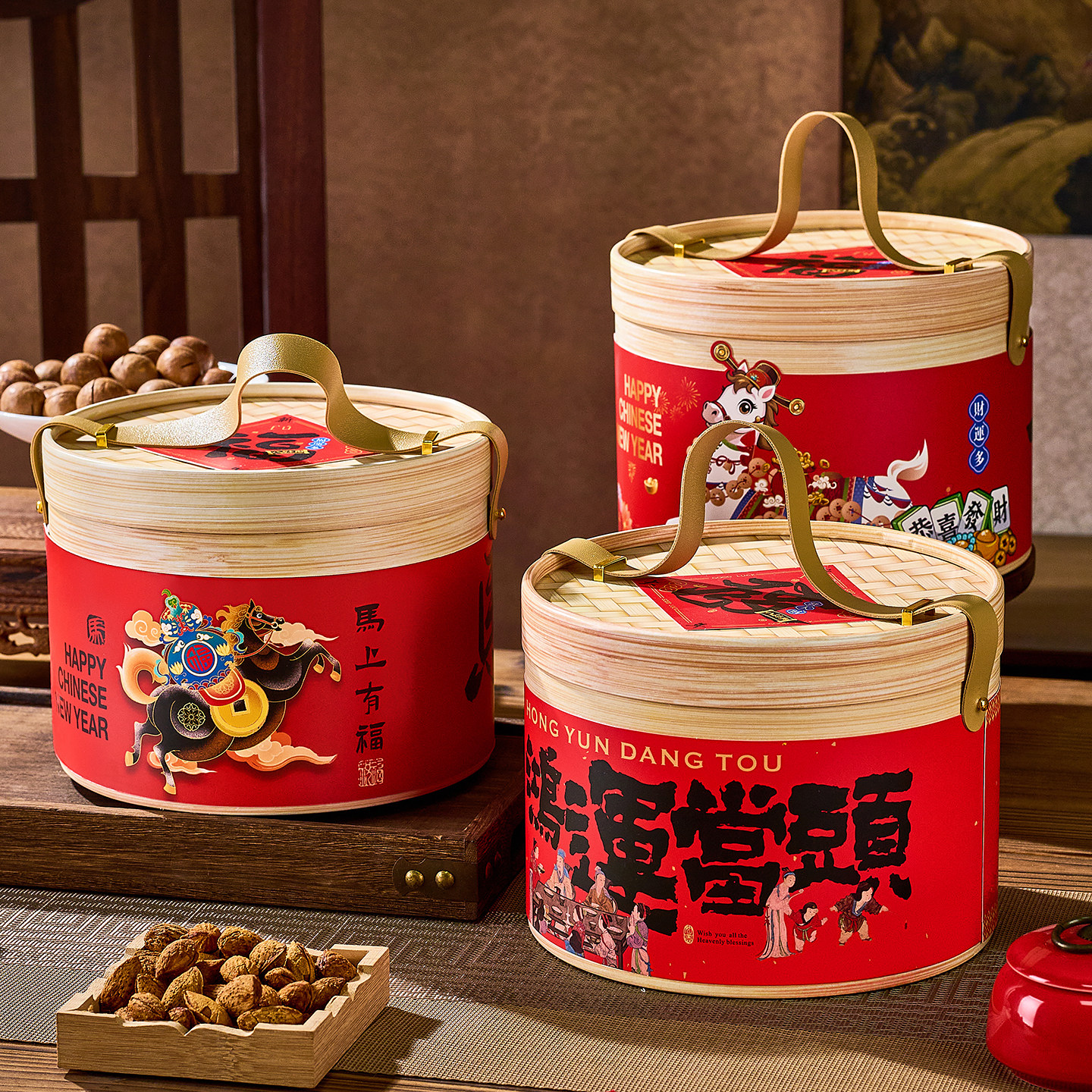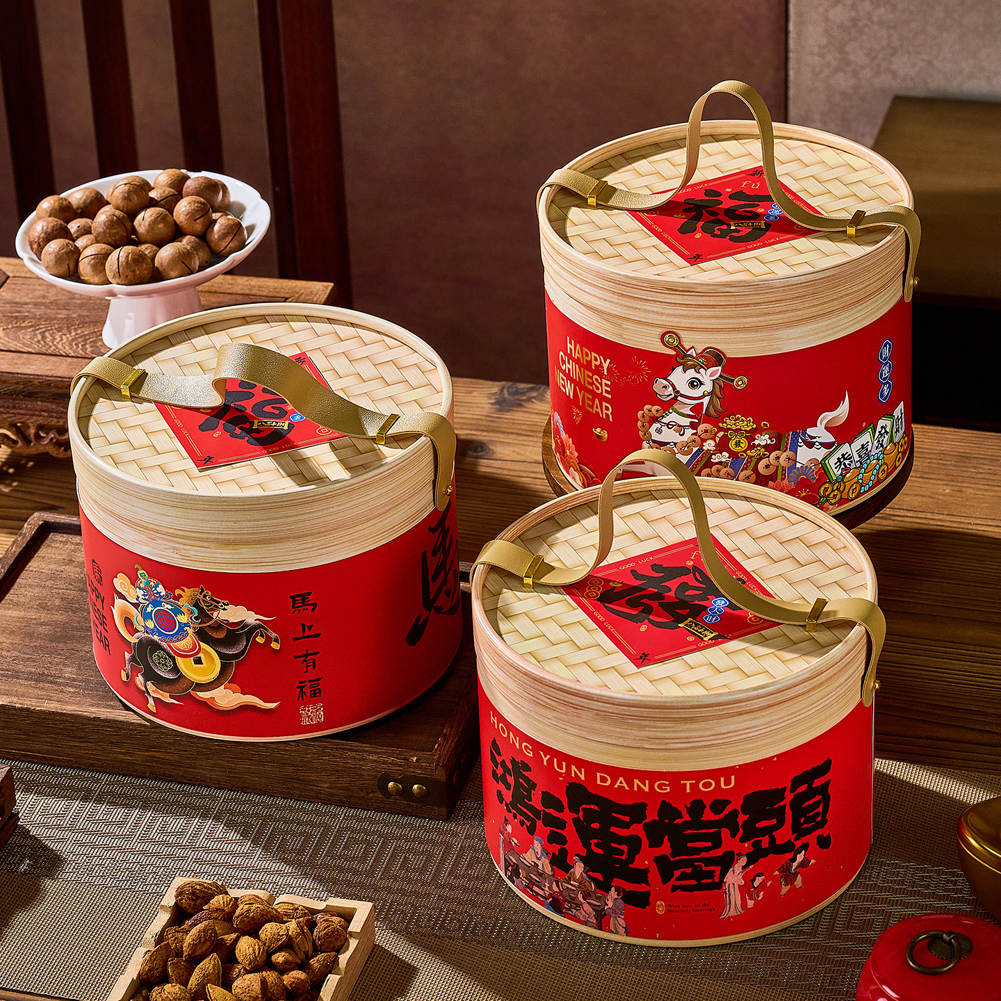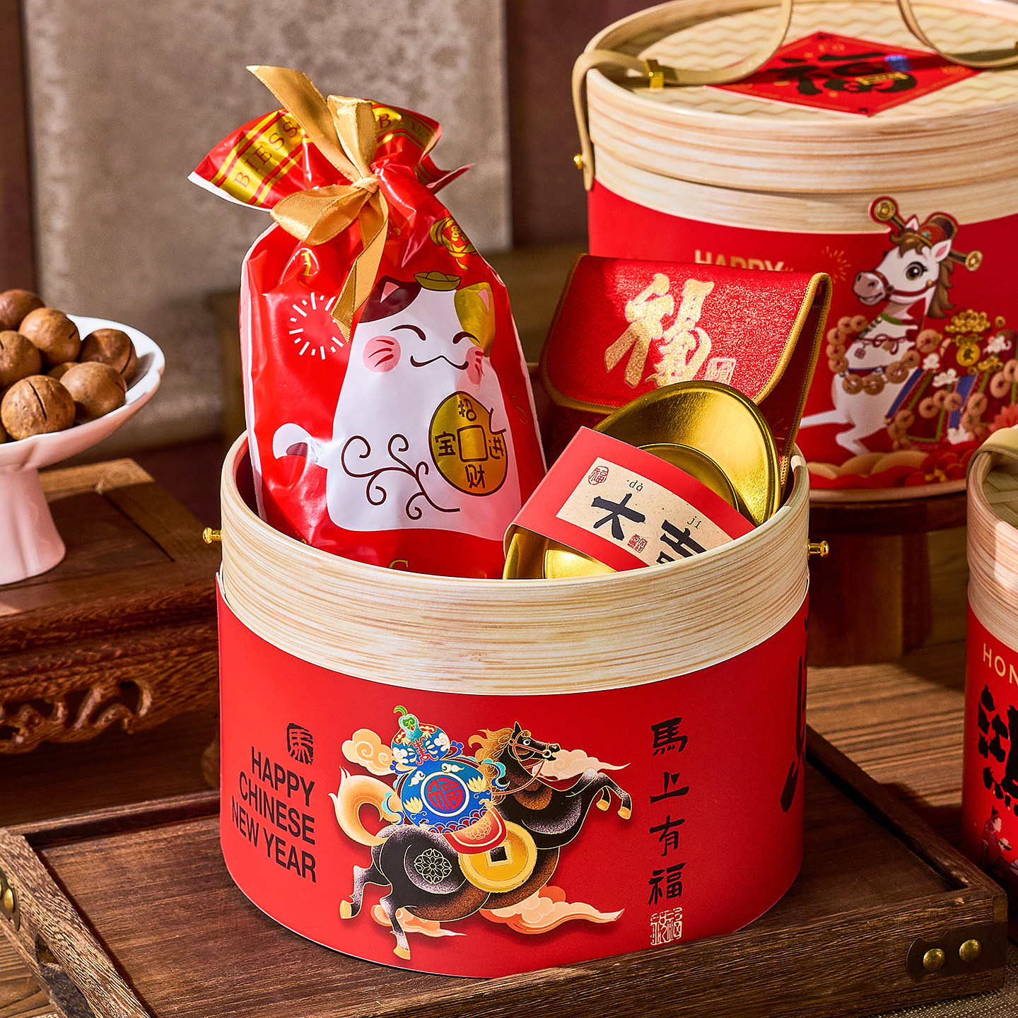 📚 马年春节包装抱抱桶甜品糖果饼干2026新年礼品空盒过年货礼盒高档