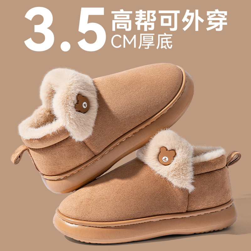 📚 厚底雪地靴女款2025新款冬季家居保暖加绒外穿高帮防滑毛绒棉鞋女