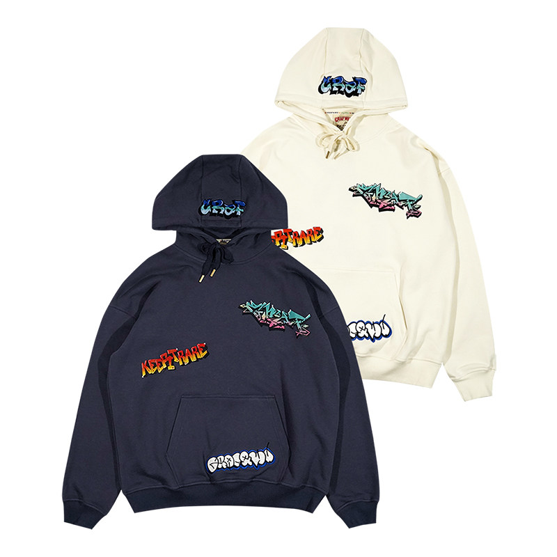 📚 GRAF原创品牌Graffiti墙上涂鸦图案刺绣重磅炭灰宽松美式帽衫卫衣