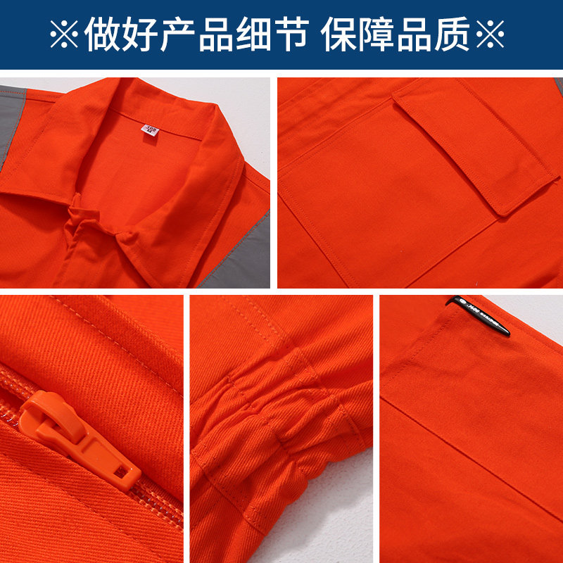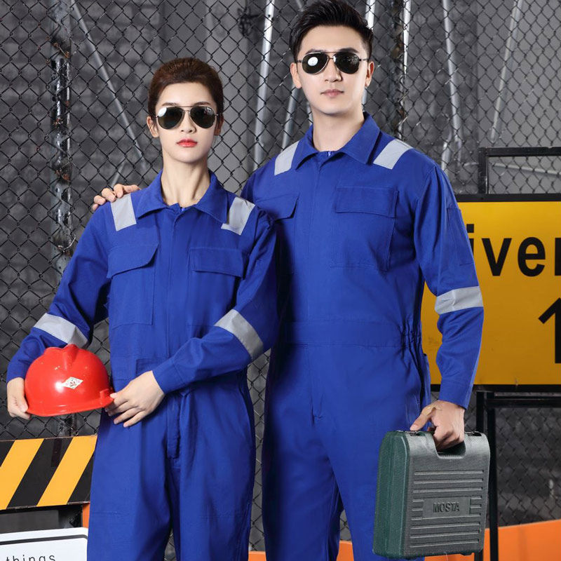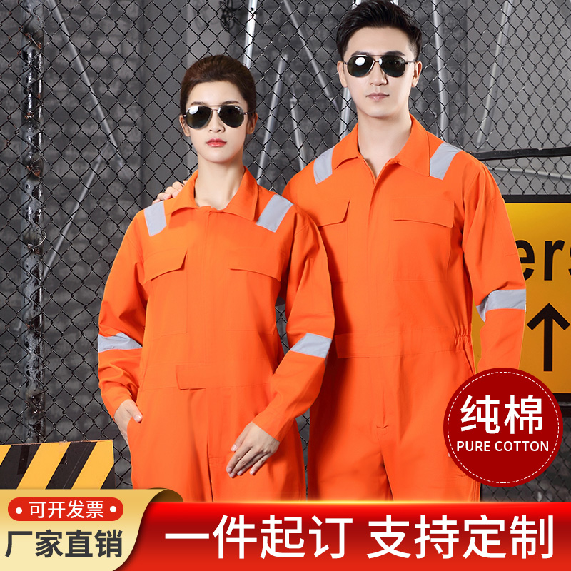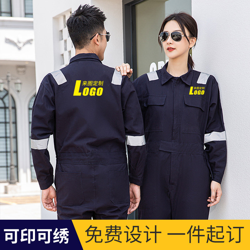 📚 纯棉长袖连体工作服套装男连体工装汽修船员工人反光条劳保服定制
