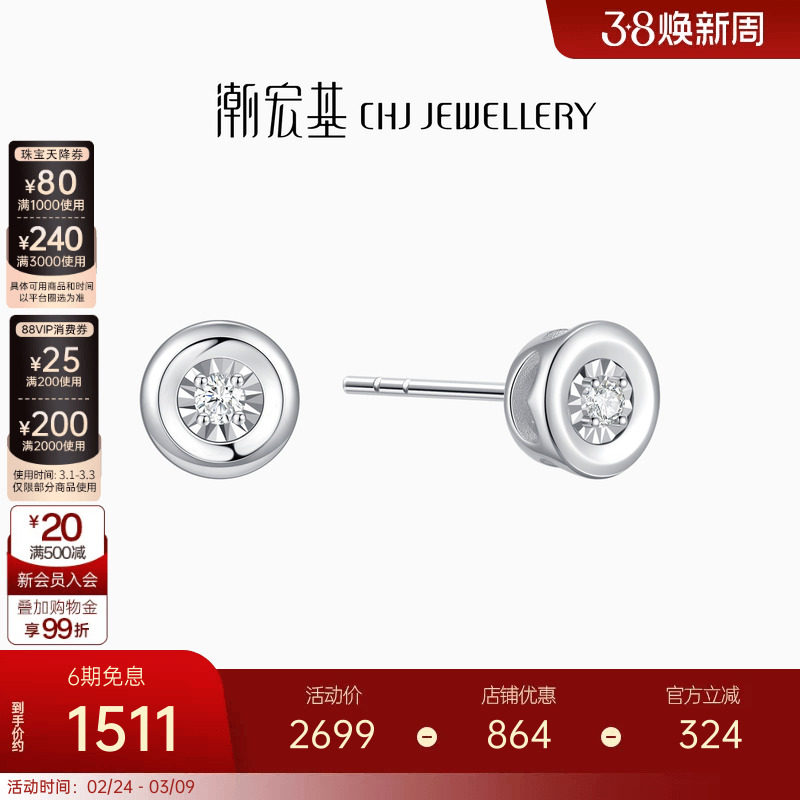 47¥ CZ057 FyHoUtEhjrK¥ https://m.tb.cn/h.icEZY51 潮宏基铂雅铂金钻石耳钉PT950耳饰简约轻奢百搭通勤妇女节礼物 --------------------- 【原售价】2,700元 【现售价】2,699元。