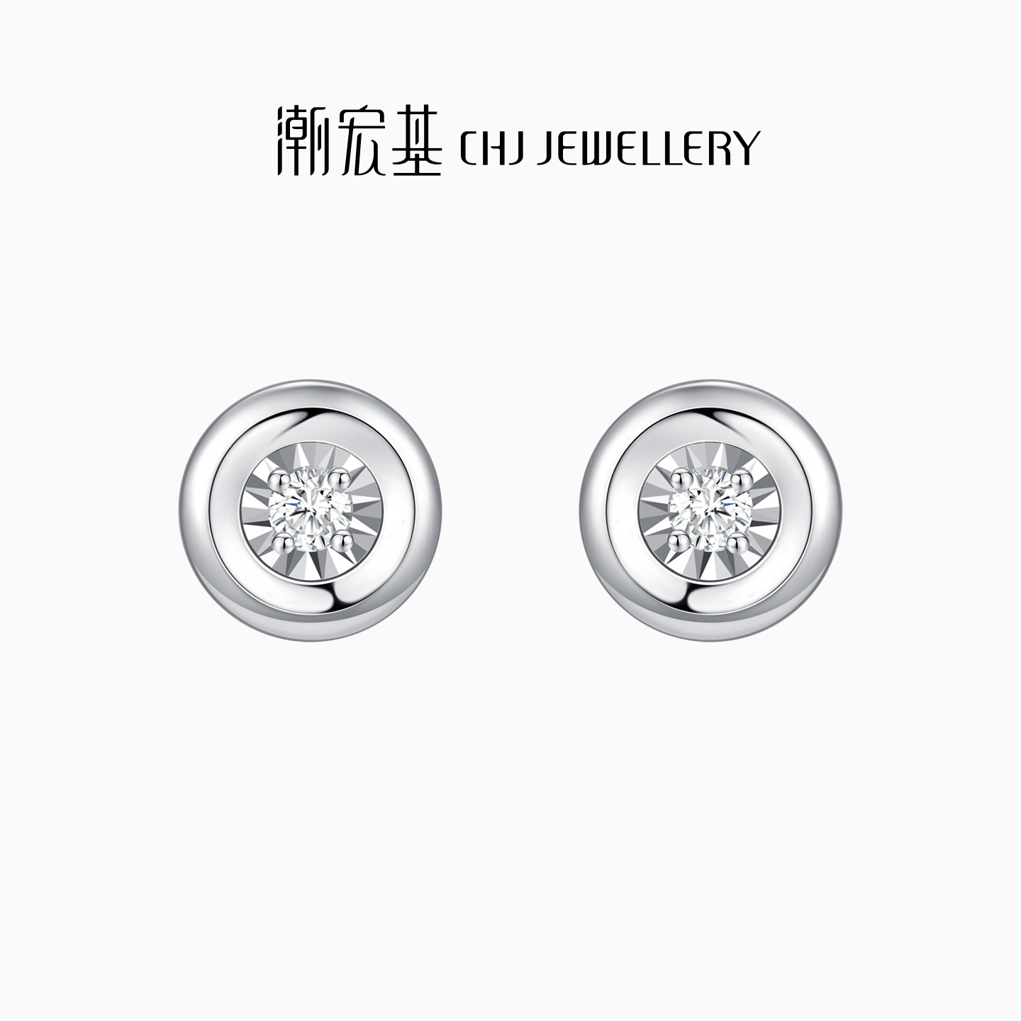 📚 潮宏基铂雅铂金钻石耳钉PT950耳饰简约轻奢百搭通勤妇女节礼物