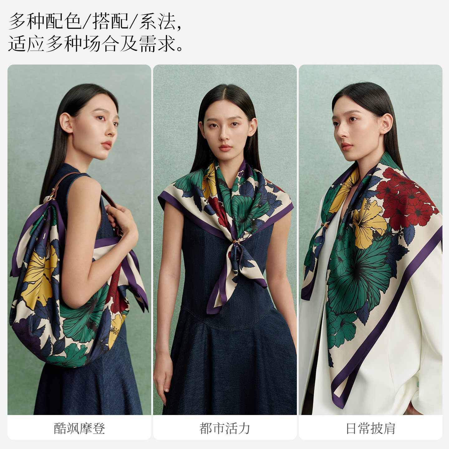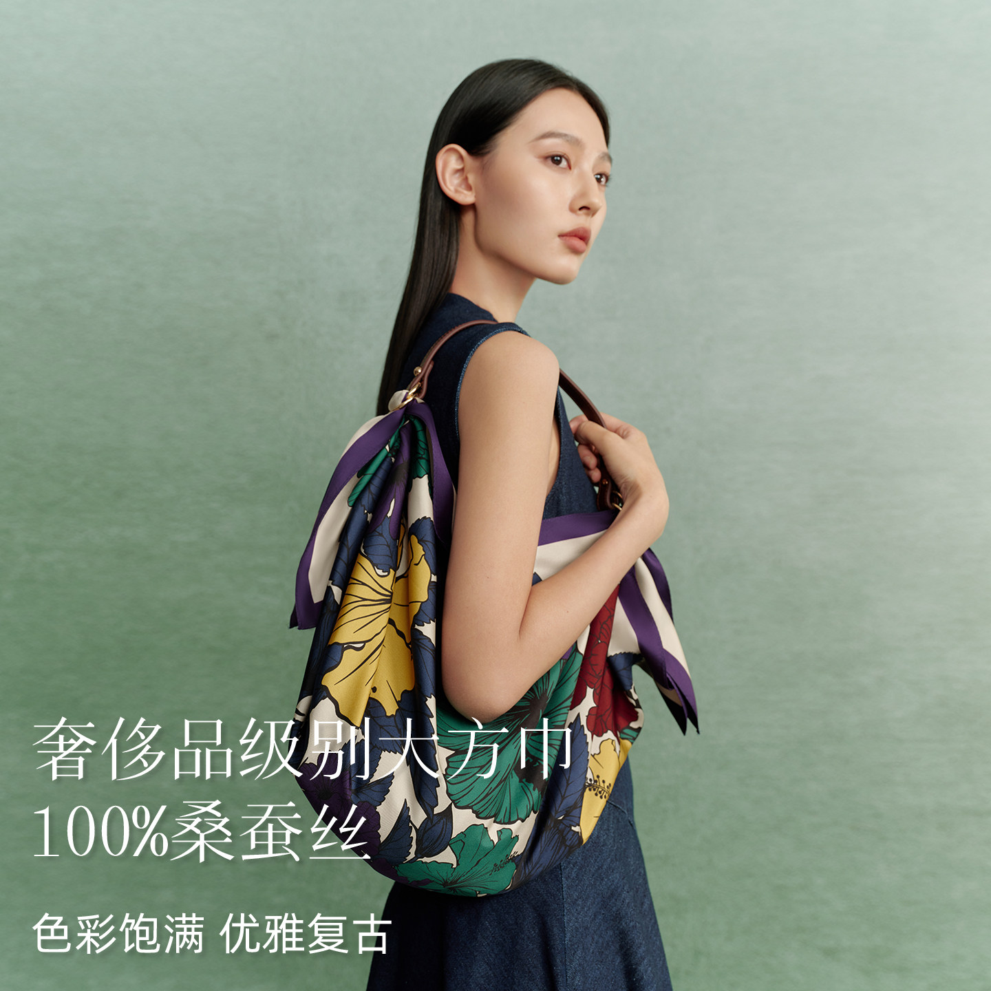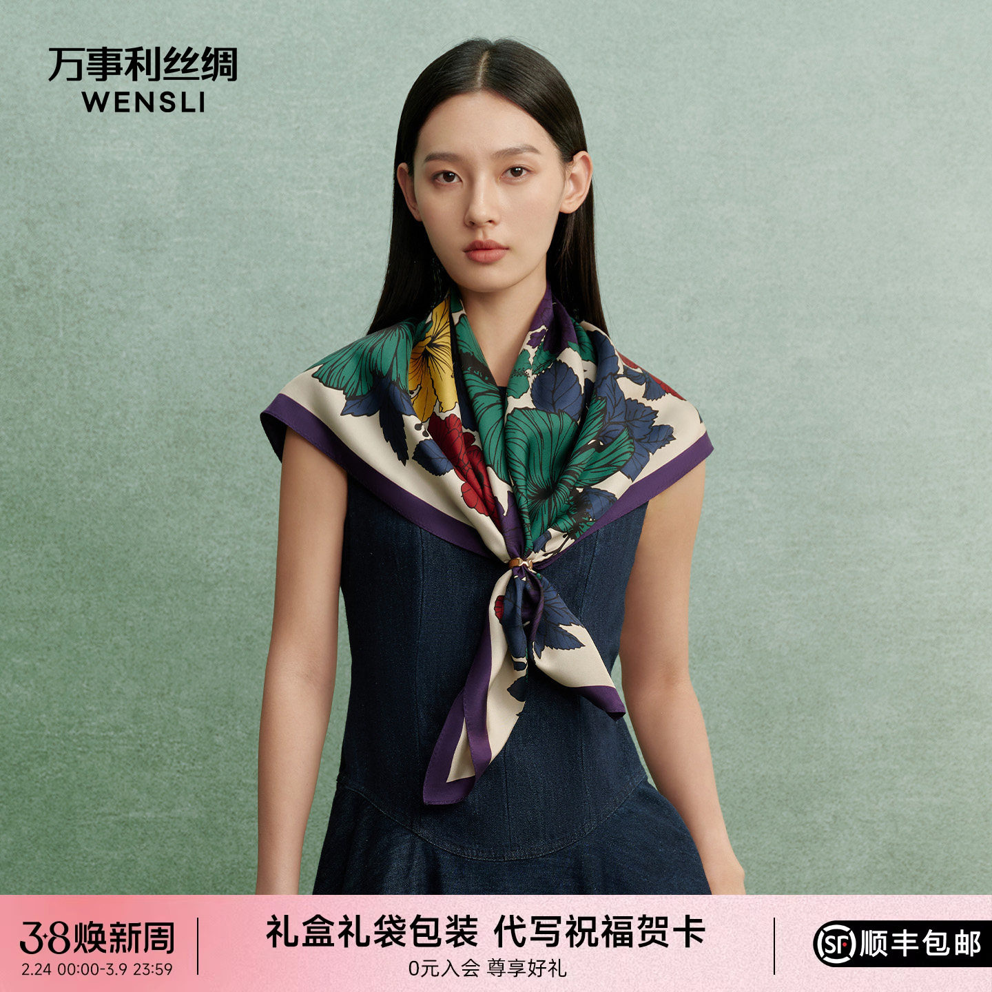 📚 万事利26春夏新品真丝丝巾印花卷边大方巾围脖披肩女礼盒装花未央