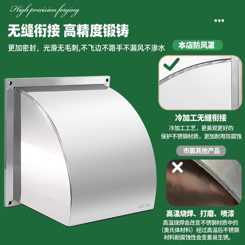 📚 304不锈钢防雨罩出风口排风罩油烟机罩挡雨板防风盖 外墙通用帽子