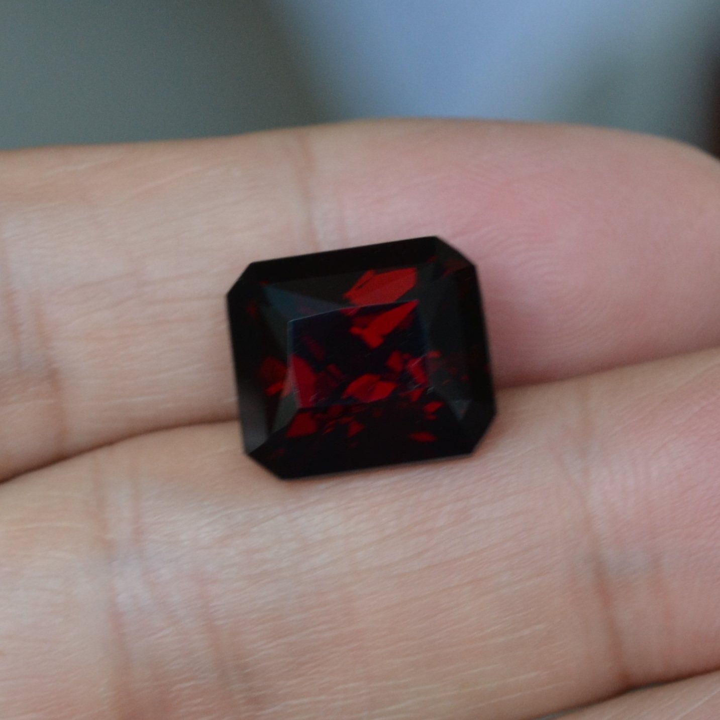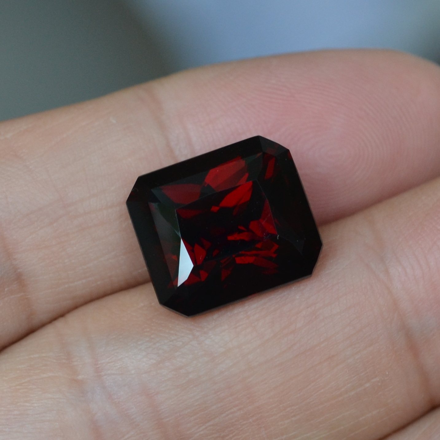 📚 超大颗深红色石榴石裸石长方形男士戒面16.3克拉全净无暇高性价比