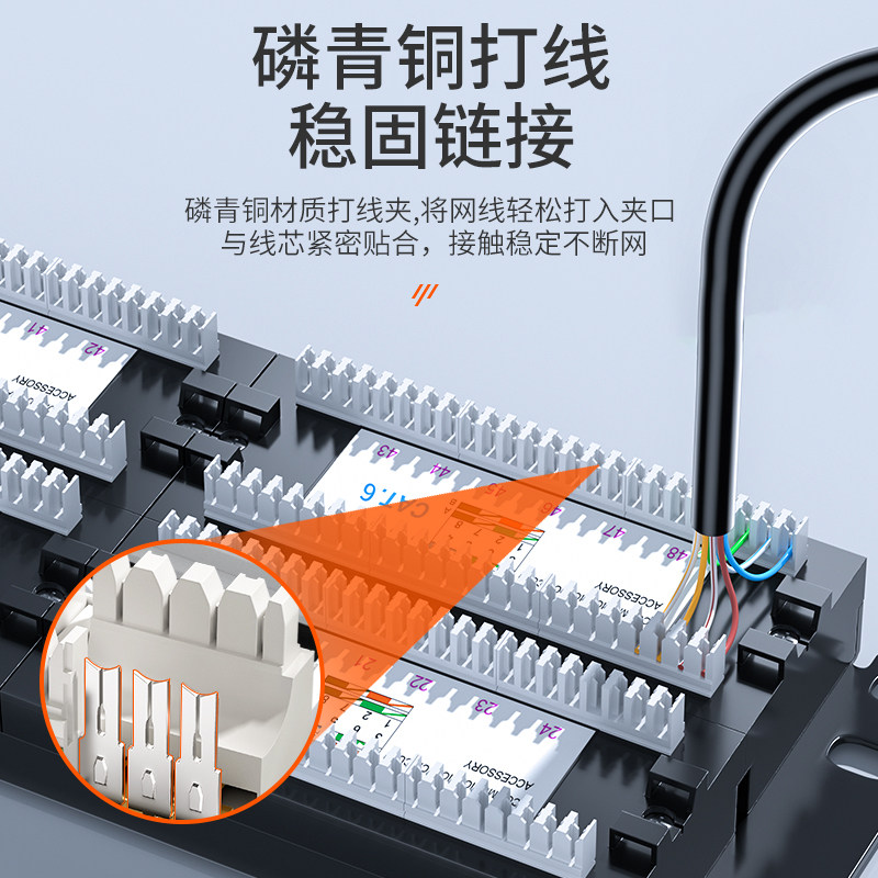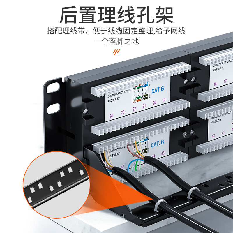 📚 山泽网络配线架24口48口网线免打直通超5五6六类千兆光纤跳线理线110电话语音配线架1U加厚金属线缆整理机柜