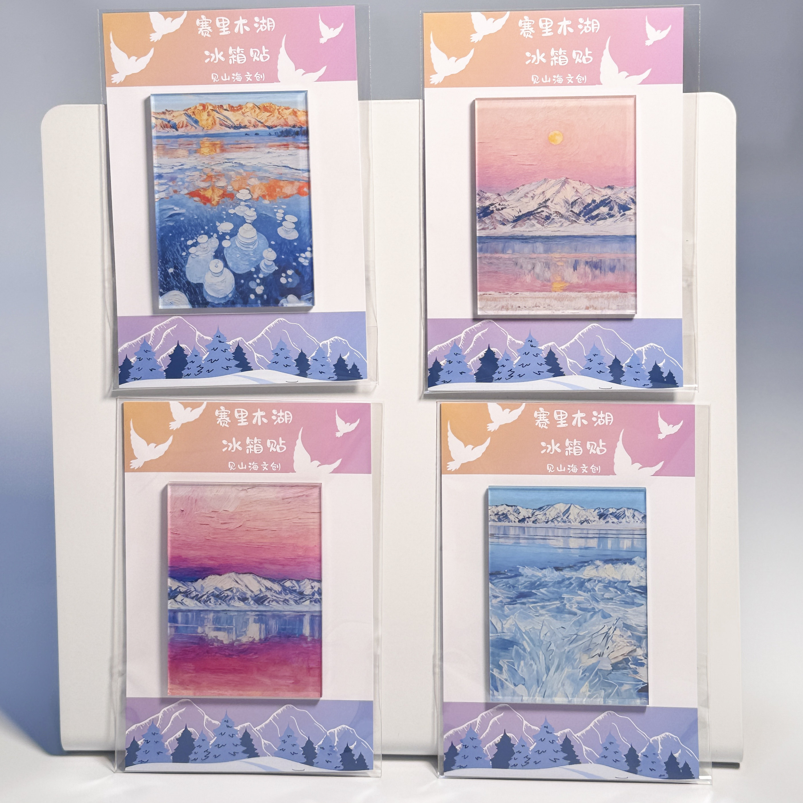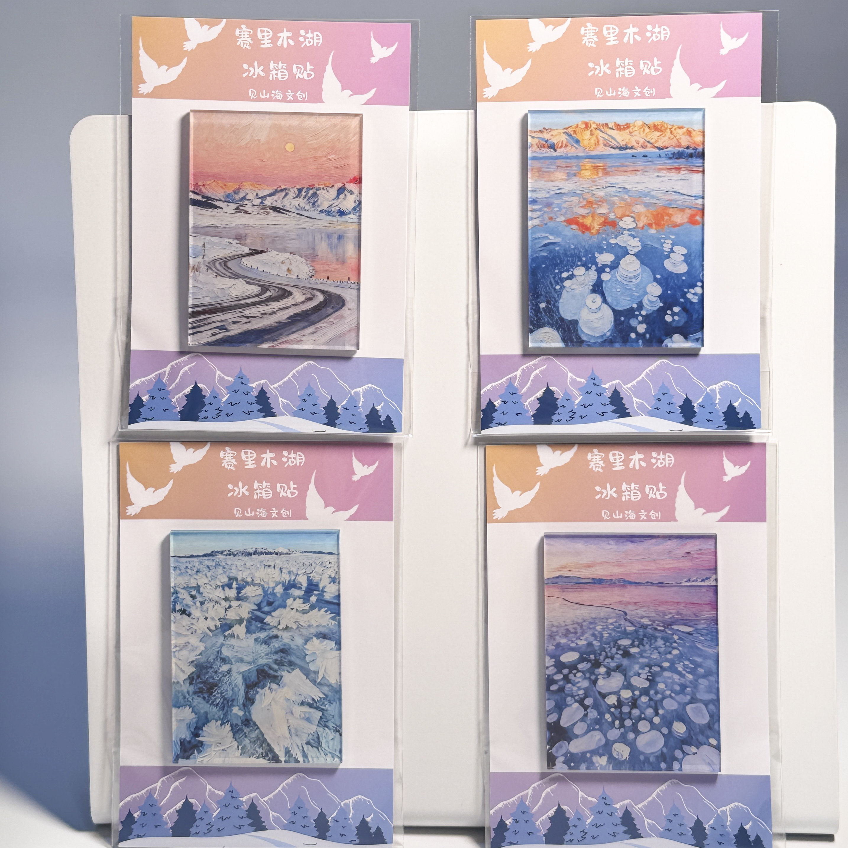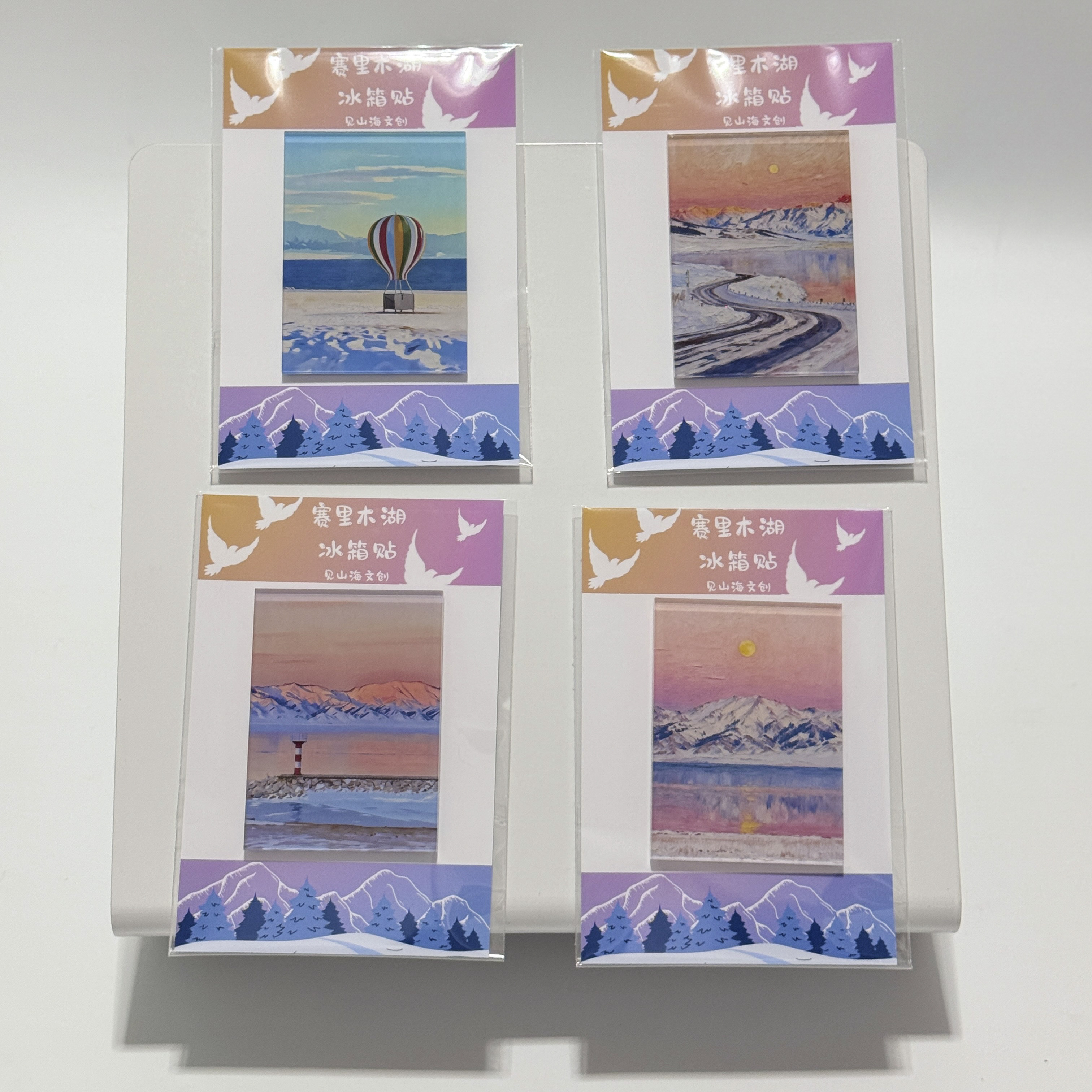 📚 新疆赛里木湖美景冰箱贴冰气泡晚霞冰花冰推日照金山灯塔气球