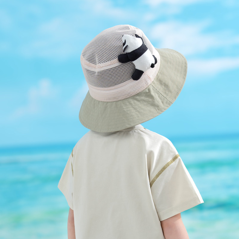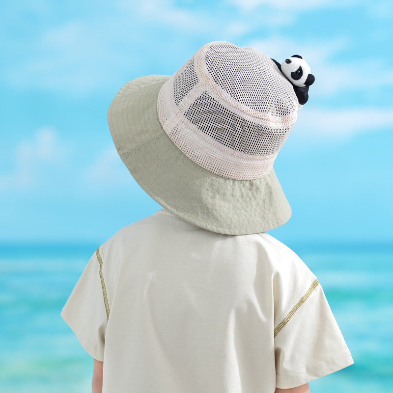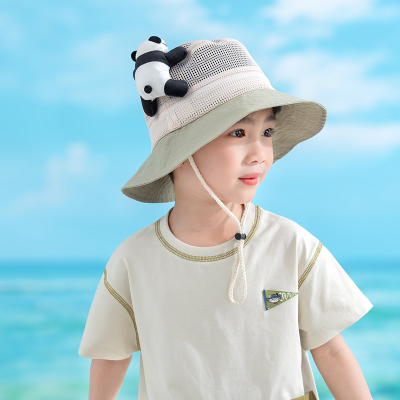📚 儿童帽子夏季男童网顶遮阳帽防晒帽可爱熊猫女童太阳帽宝宝渔夫帽