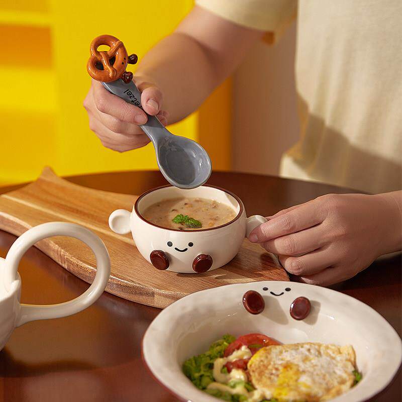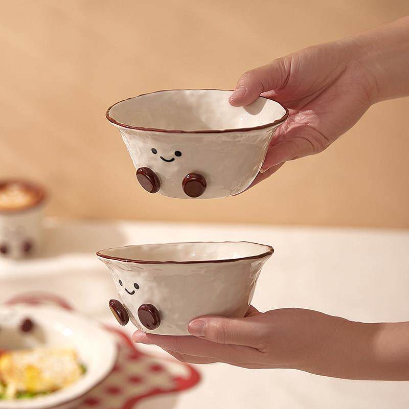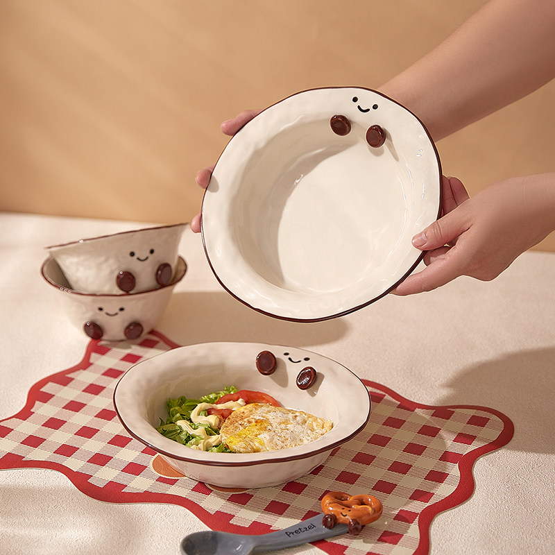 📚 可爱可可豆餐具陶瓷漂亮盘子米饭碗家用高级感早餐盘泡面 面碗马