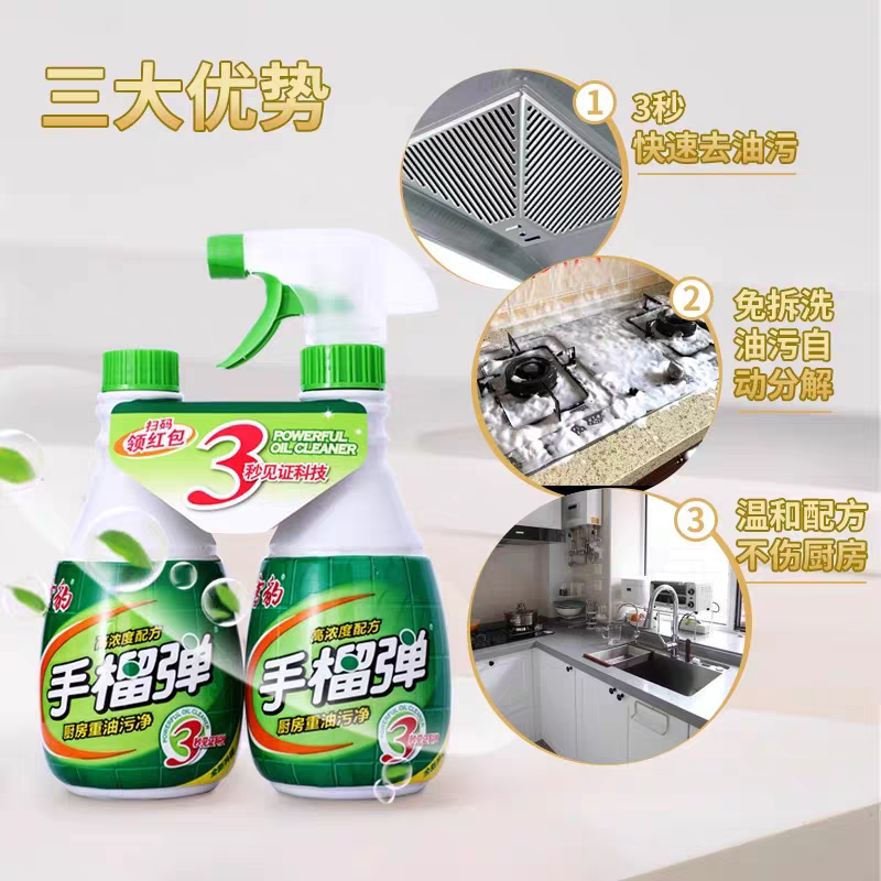 📚 雪豹手榴弹强力清洗剂去污清洁神器油污净重油清洁油烟机清洗剂