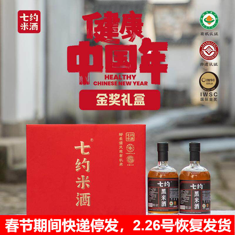 📚 七约米酒金奖礼盒 有机黑米酒2瓶装 高定版礼盒新年节日送礼佳品