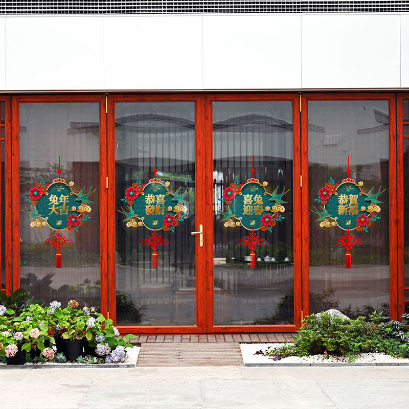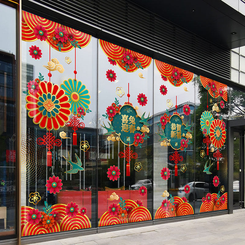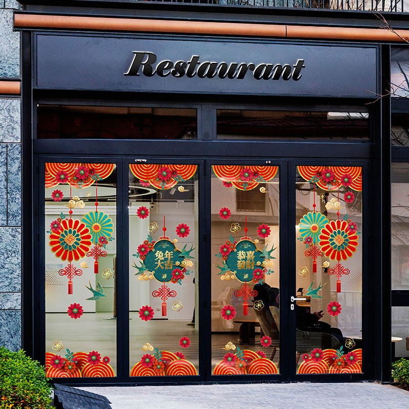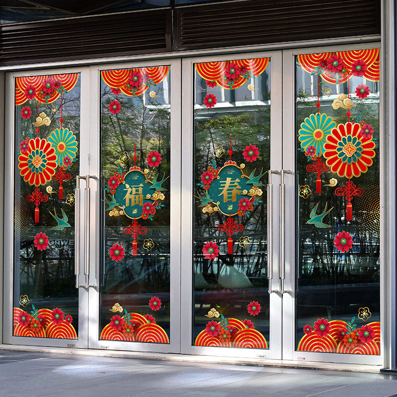 📚 彩色扇花吊饰玻璃贴纸花扇吉祥元素过年气氛包围写字楼前台装饰贴