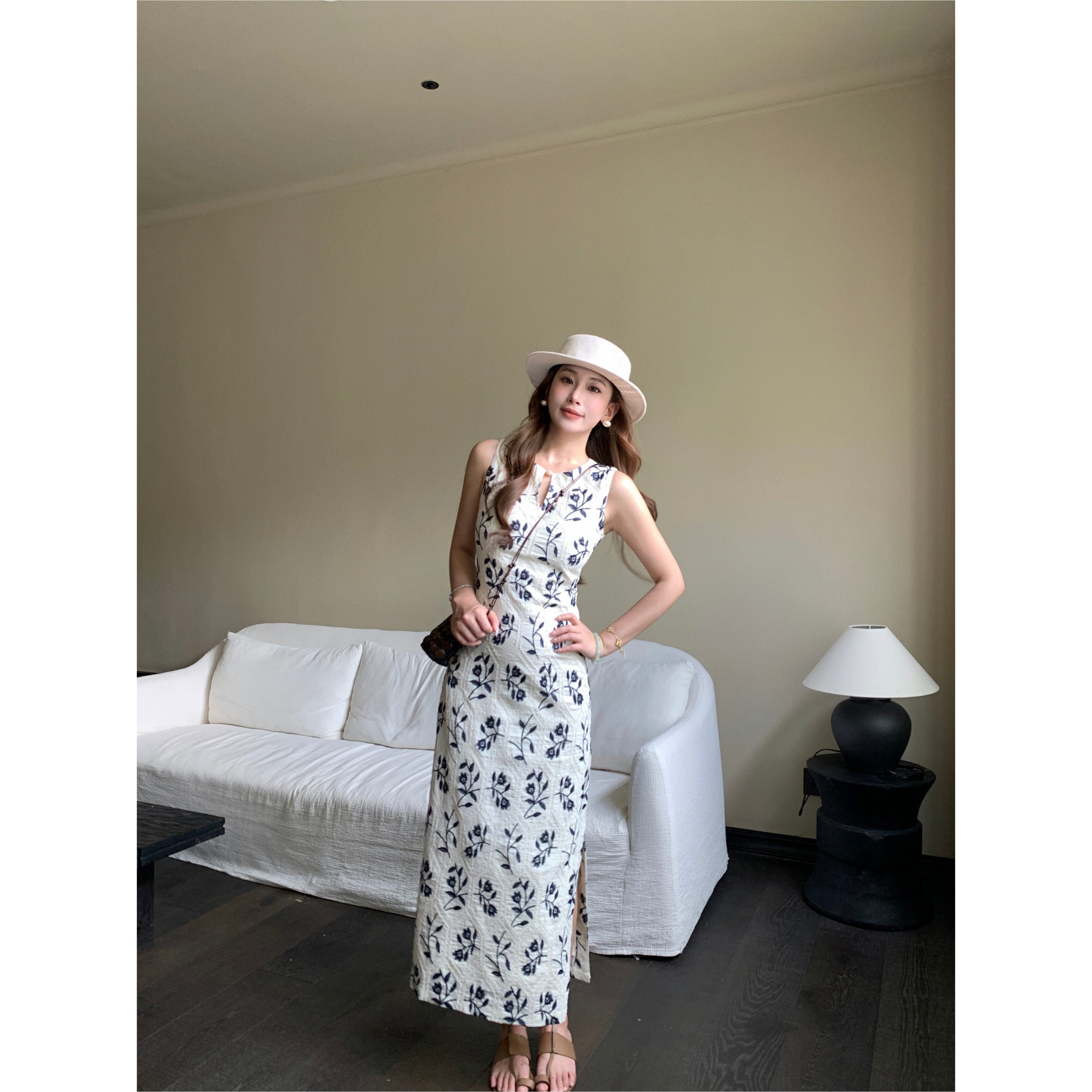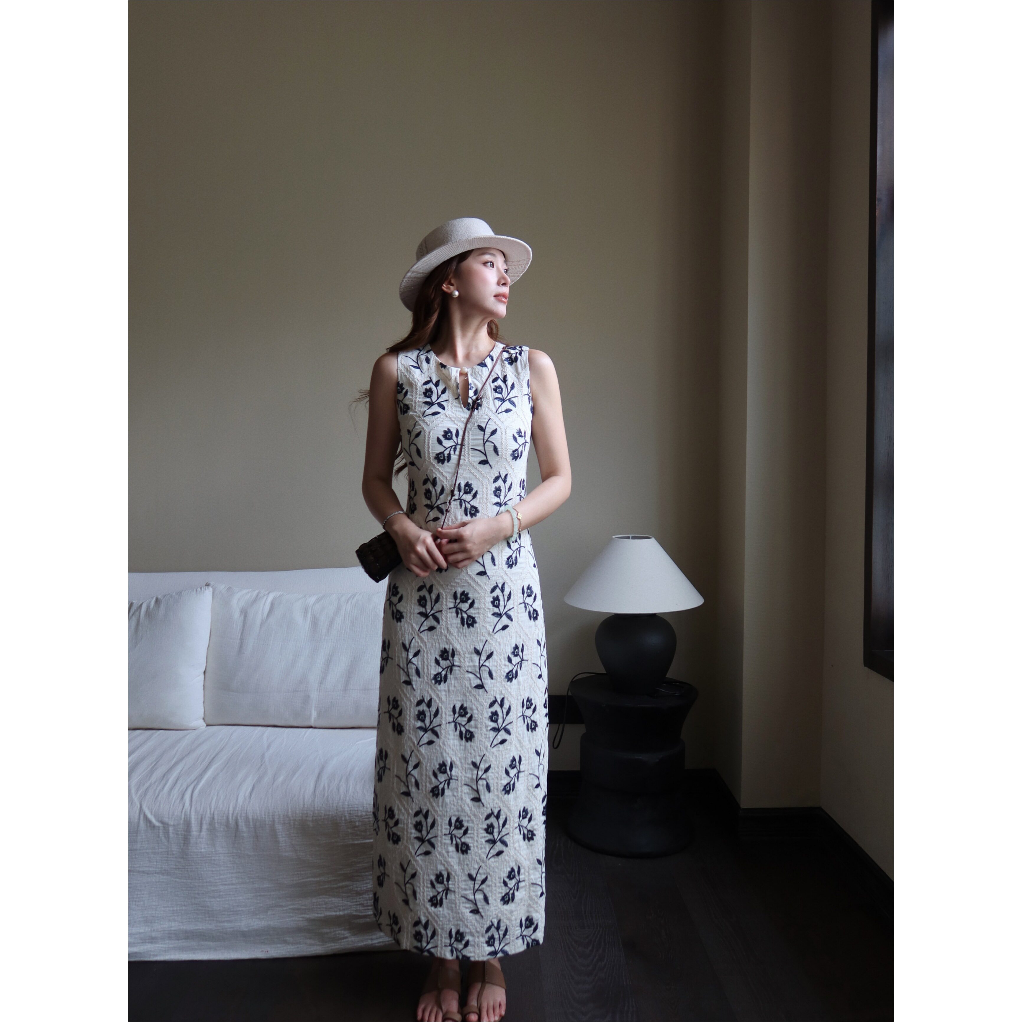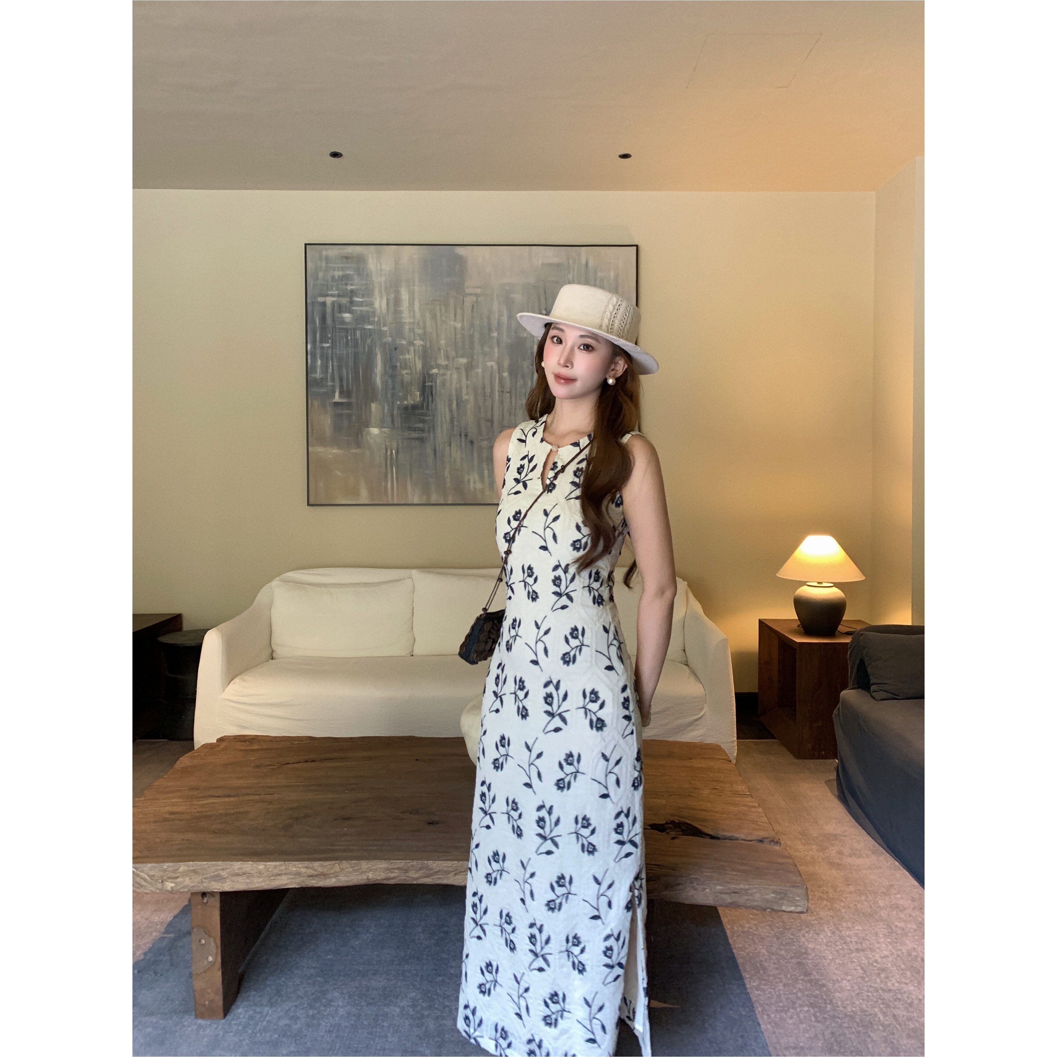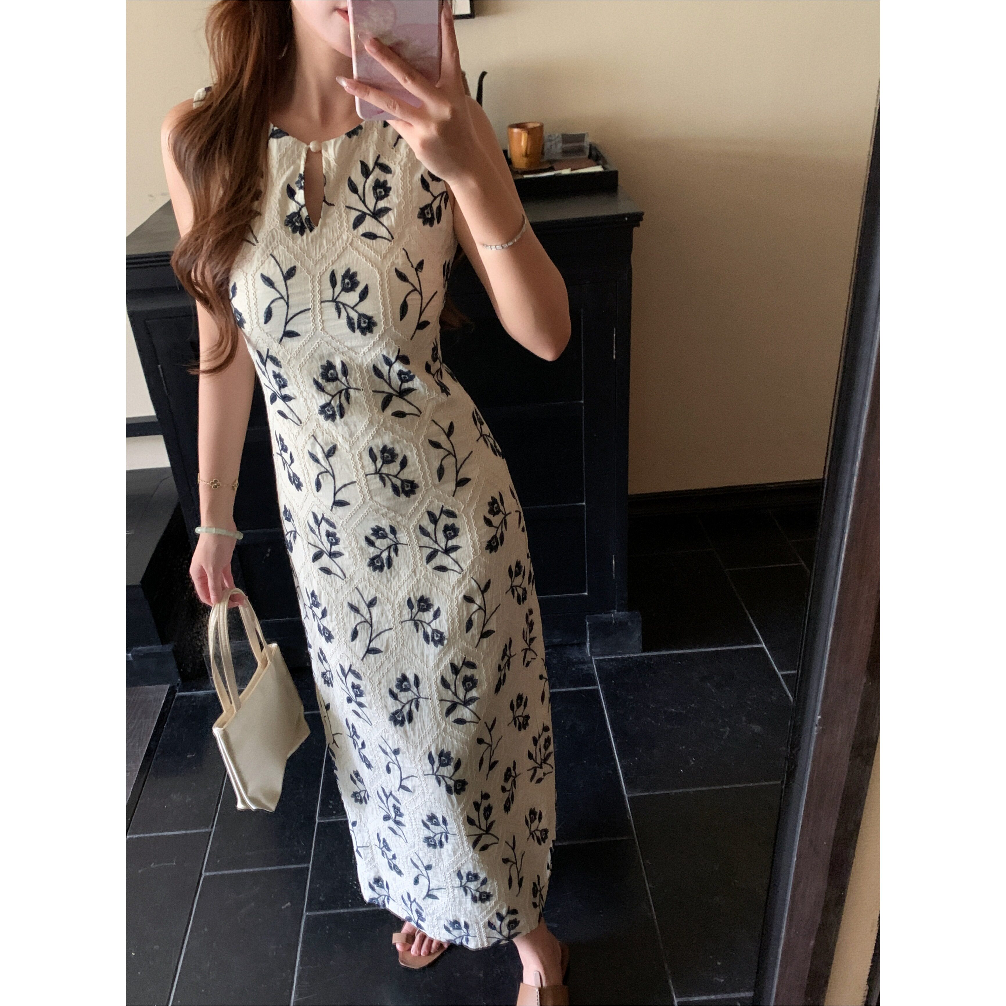 📚 新品限时85折 植物系重工刺绣气质温柔亚麻显瘦收腰连衣裙