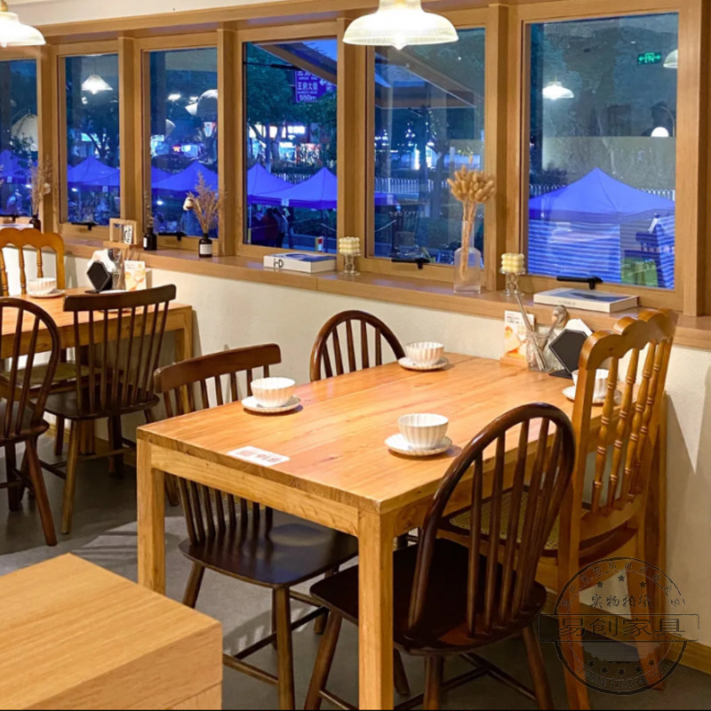 📚 老榆木桌椅日式韩式料理餐桌小吃店快餐店桌椅面馆店麻辣烫店桌椅