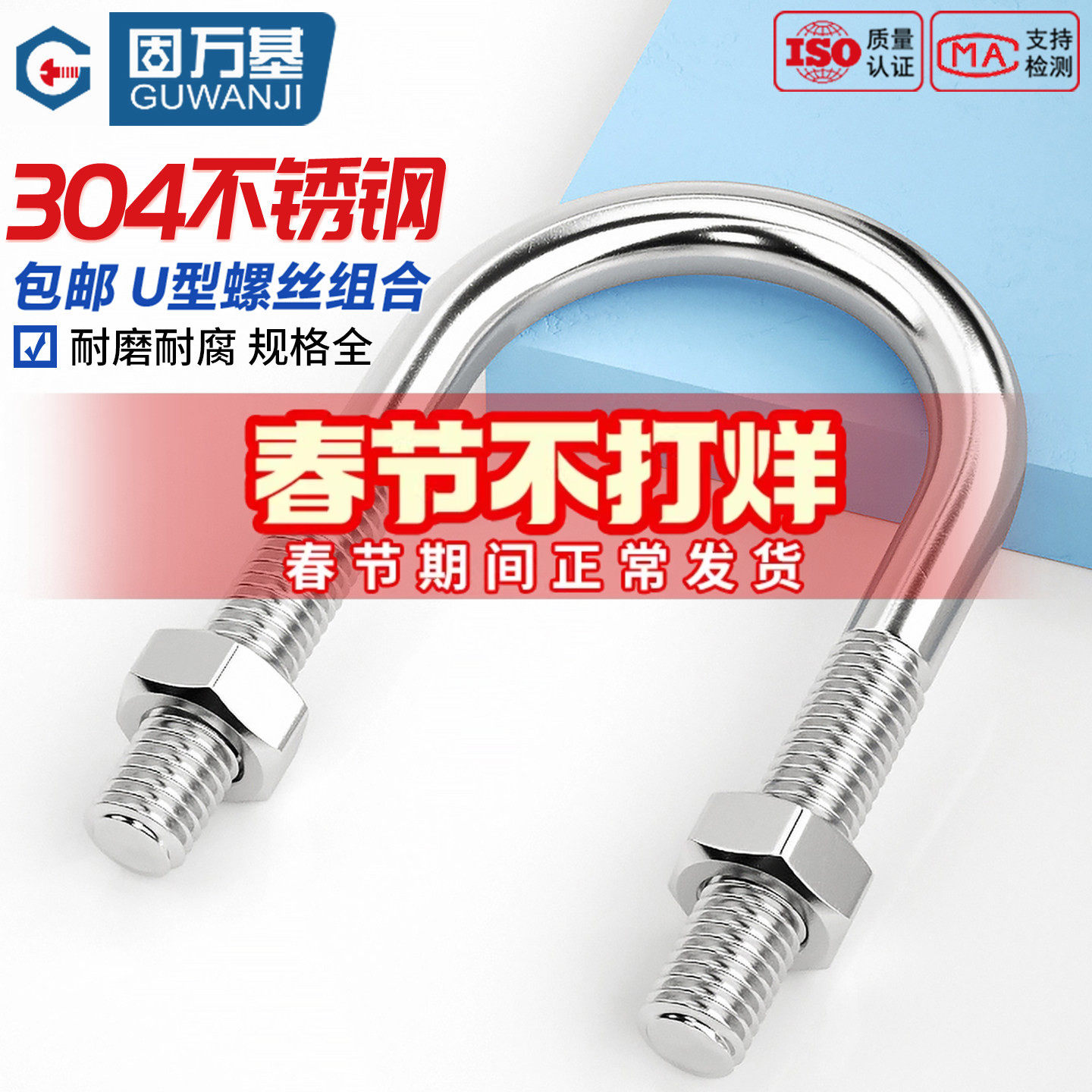 📚 U型螺栓304不锈钢U型螺丝螺母套装U形管卡管夹固定卡扣M6M8M10M12