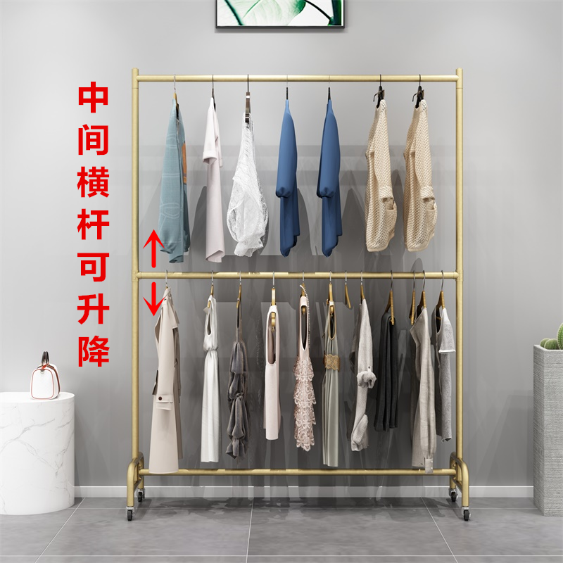 📚 双层衣帽架落地卧室单杆室内凉衣杆挂衣架阳台晒衣服架子带轮