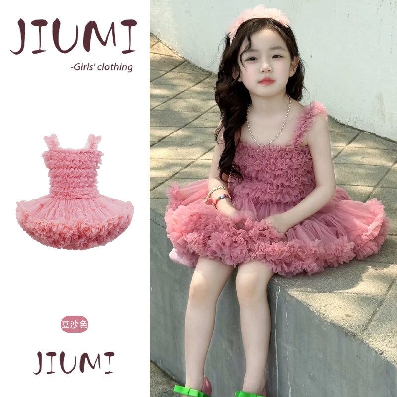 📚 女童夏季灵动网纱凸凸裙女宝宝洋气软萌灵动蓬蓬裙可爱生日吊带裙