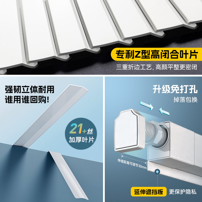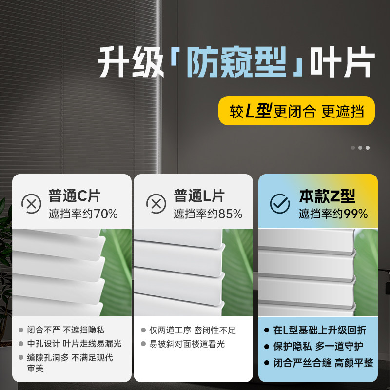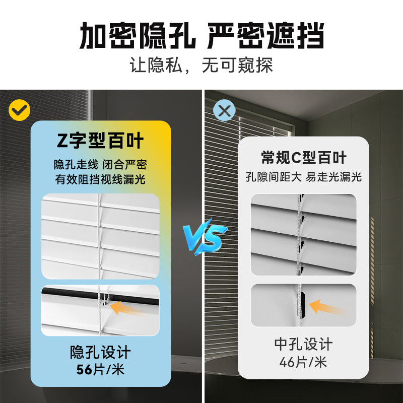 📚 喜杏Z型防窥L百叶窗帘免打孔卫生间专用浴室厕所厨房遮光升降卷帘