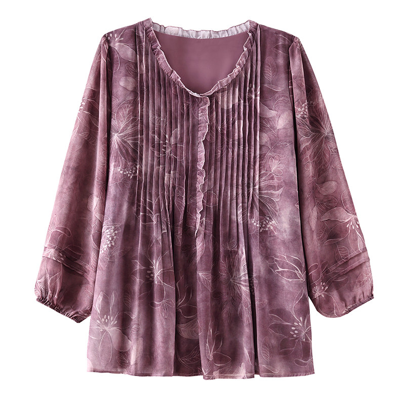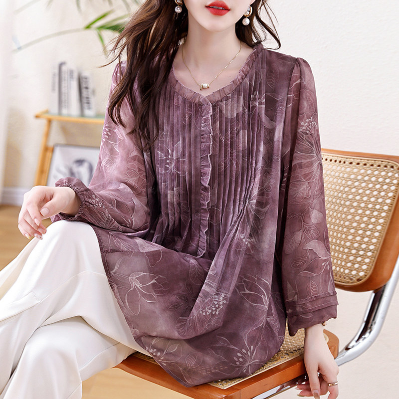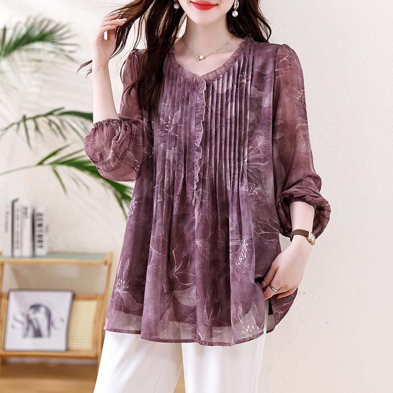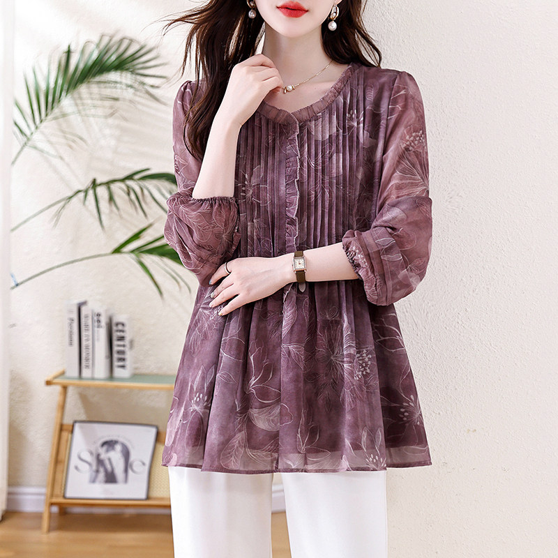 📚 九月陌墨新中式压褶中长款雪纺衫女春秋2025新款大码减龄气质上衣
