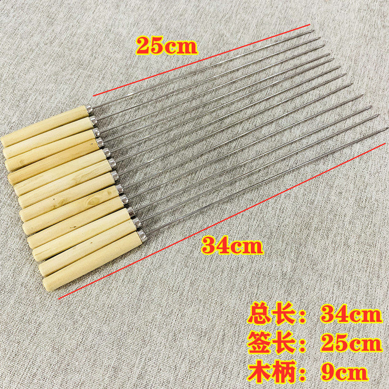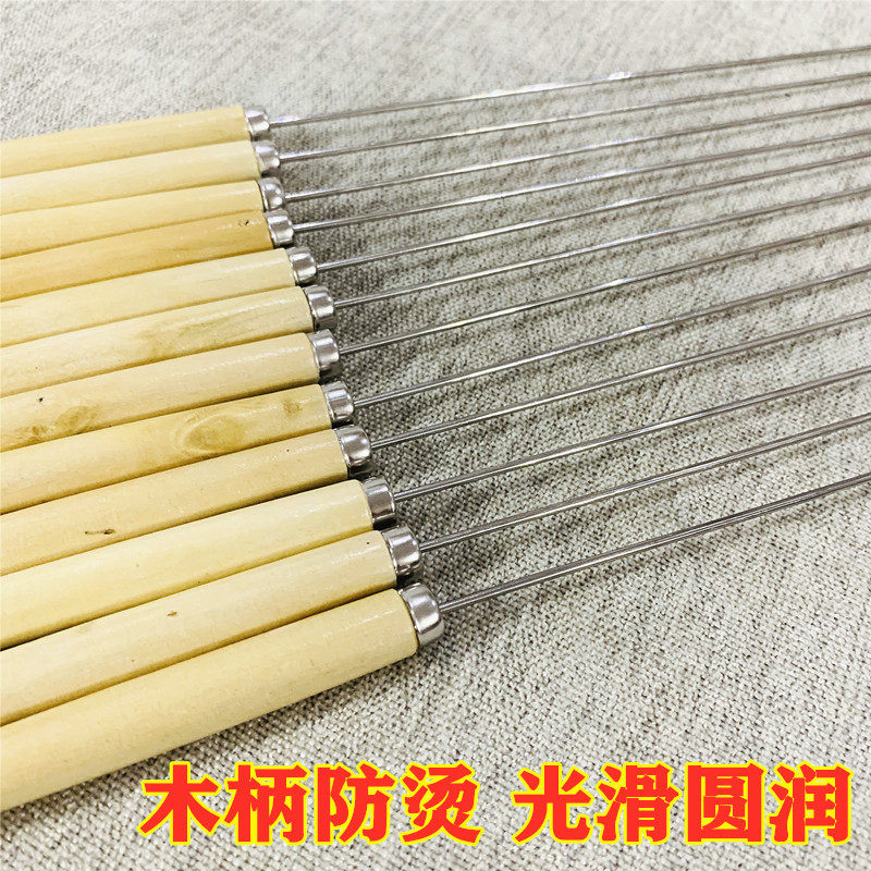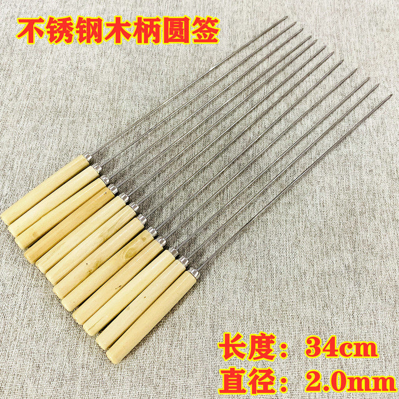📚 不锈钢木柄圆签烧烤签子带把签子烧烤针羊肉串烤肉钎子工具配件