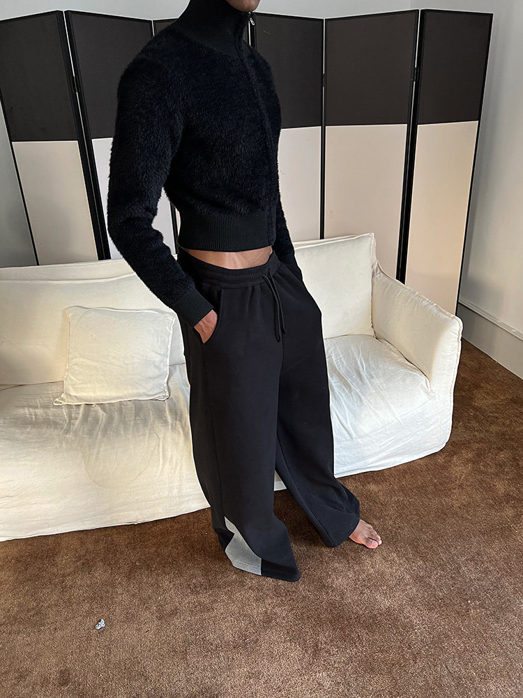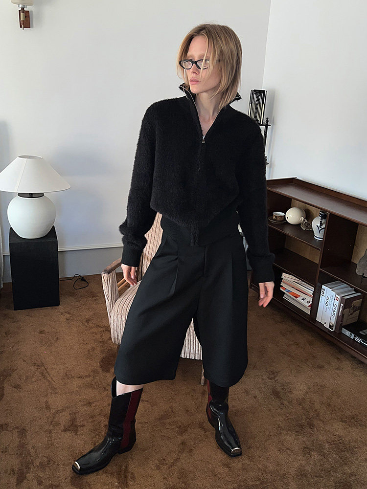 📚 FSG Freedom Soluble拼接仿貂绒针织高领拉链开衫