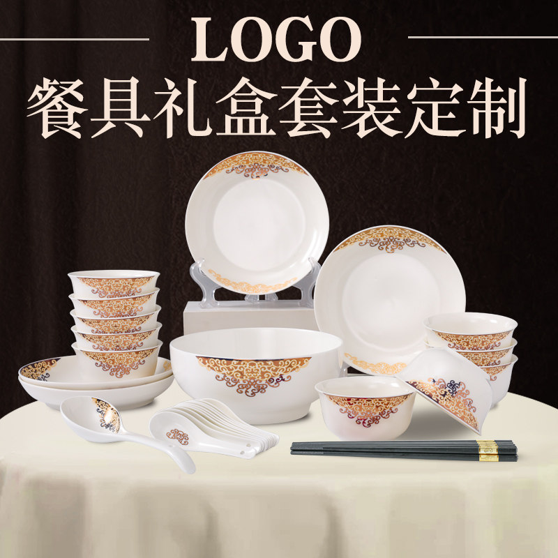 📚 陶瓷餐具礼品定制碗盘碟套装盒子印logo楼盘保险送礼骨瓷套碗礼盒