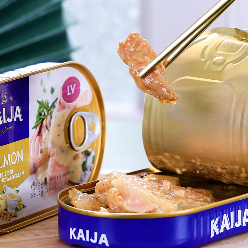 📚 进口芥末三文鱼罐头 拉脱维亚海鱼鲜美营养丰富西餐户外野餐 170g