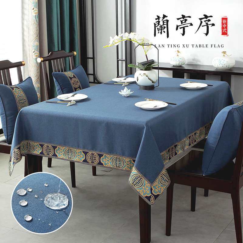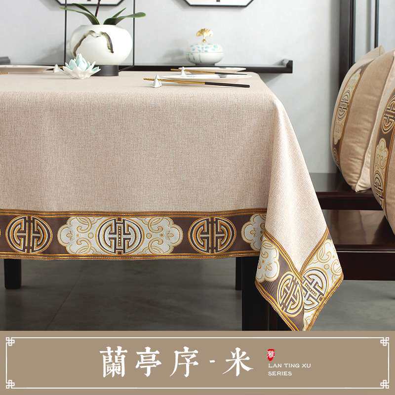 📚 新款中式仿棉麻防水桌巾中式餐厅餐桌盖布茶几巾桌布通用盖巾