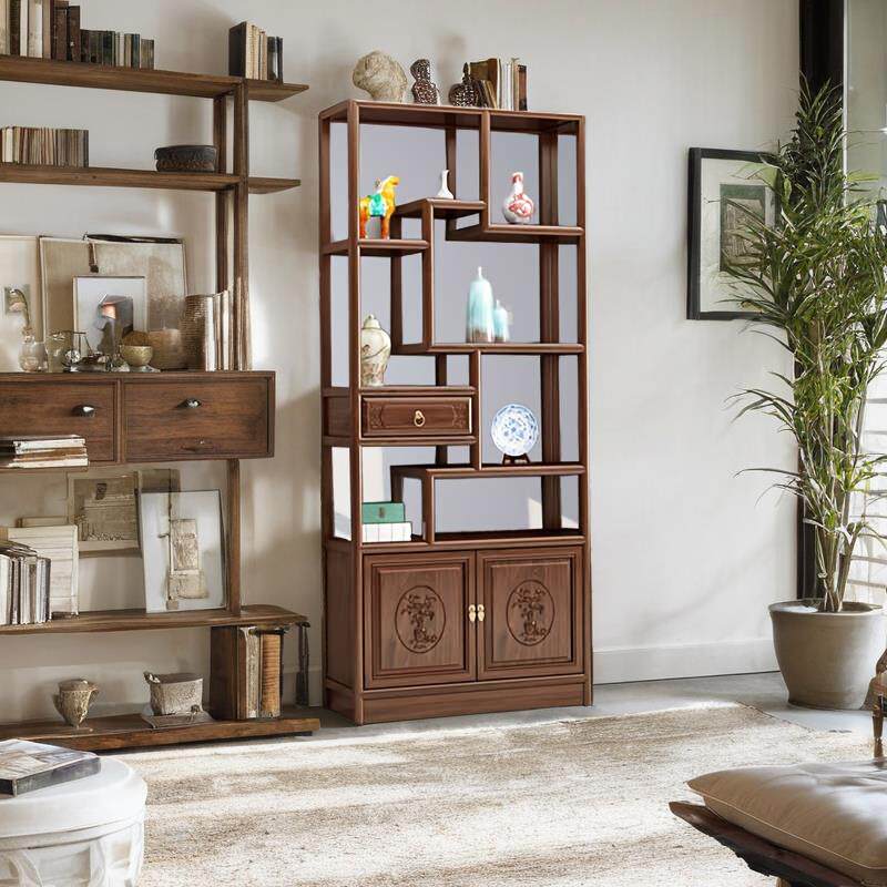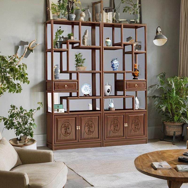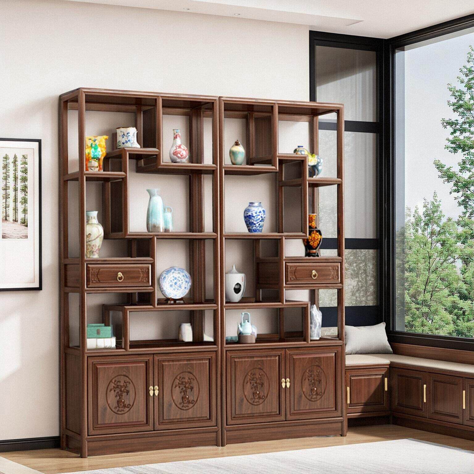 📚 新中式实木博古架金花梨木多宝阁客厅古董置物架茶叶隔断展示柜