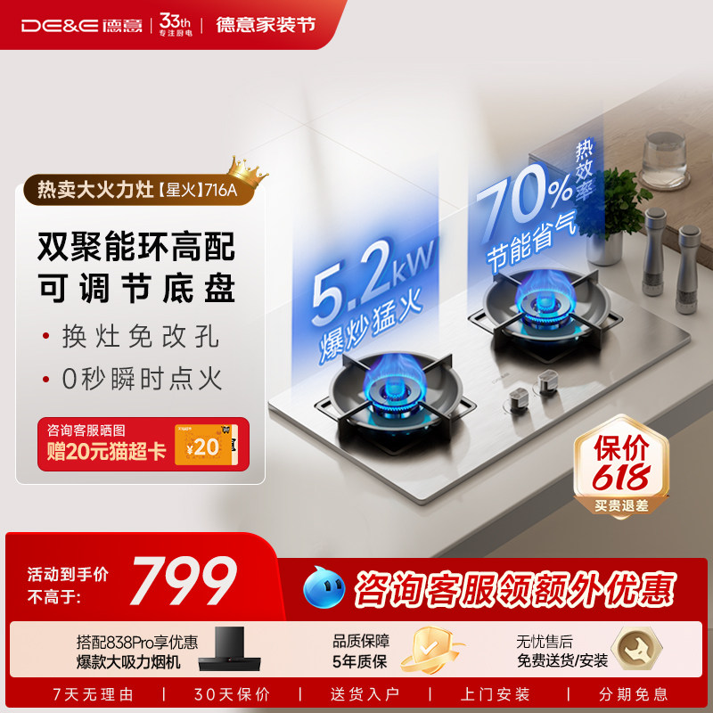 📚 德意星火燃气灶不锈钢家用煤气天然炉灶液化气节能