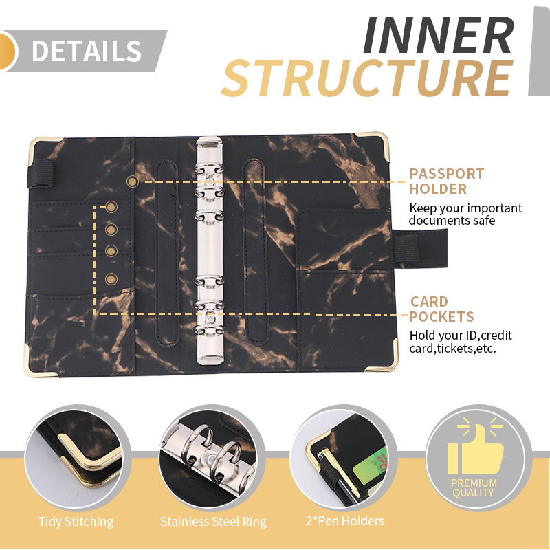 📚 A6 PU Leather Marble Notebook Binder Budget Planner Money Or