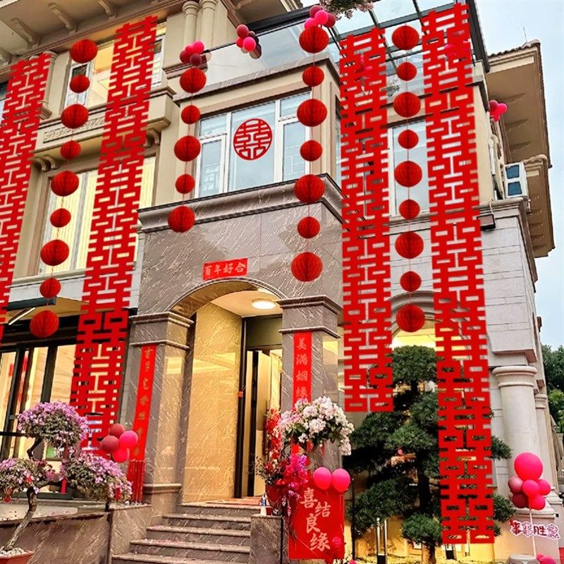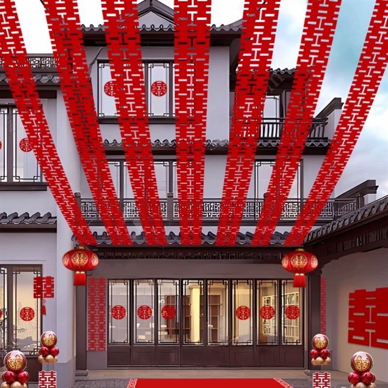 🌸亲爱的朋友们,今天要给大家种草的是一套特别又浪漫的婚礼外景装饰,简直让人爱不释手!这不是普通的喜字装饰,而是一件寓意满满、美到心里的结婚长条喜字农村别墅大门连体囍拉花装饰!