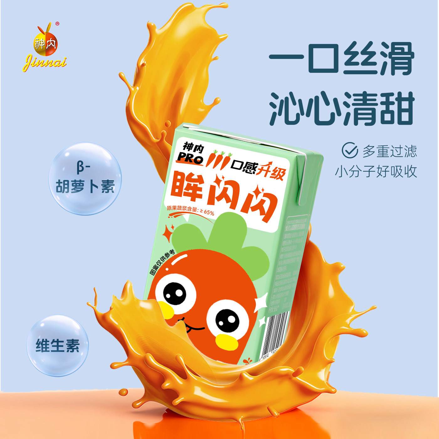📚 神内眸闪闪胡萝卜汁饮料新疆特产无添加125ml*20鲜榨叶黄素果蔬汁