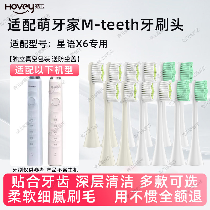 📚 适配mteeth/萌牙家星语X6电动牙刷头通用替换萌芽家软毛清洁