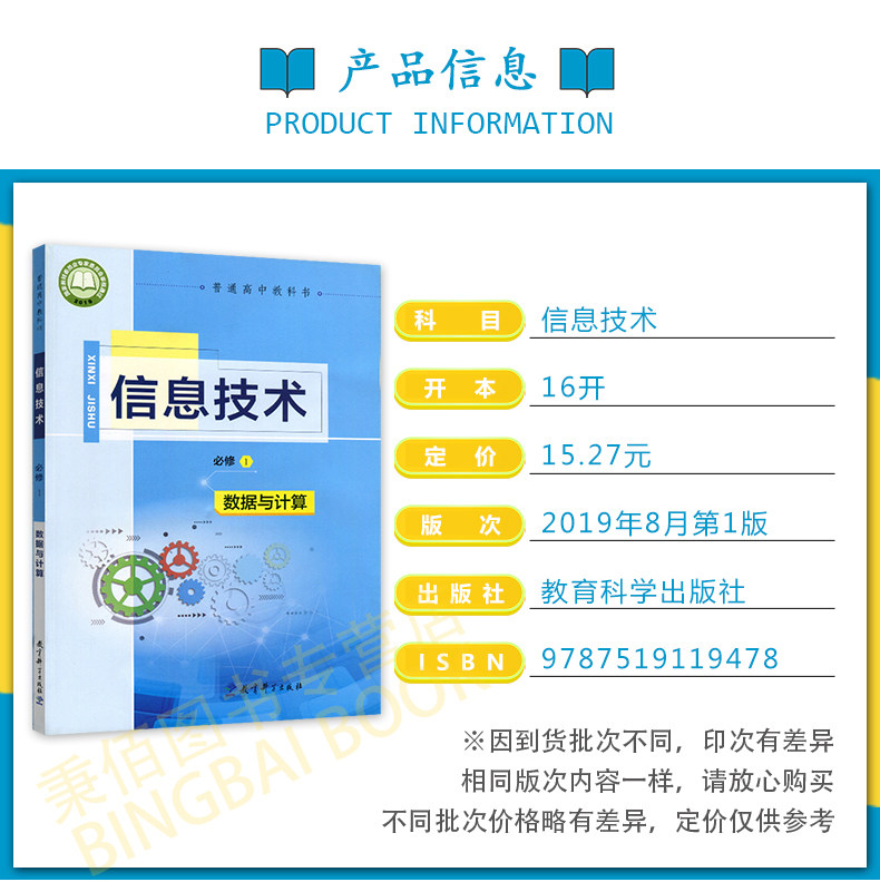 📚 正版 新版 教科版信息技术书必修1 数据与计算 教材课本教科书 教育科学出版社高一学生用书信息技术必修一 信息技术书必修1 无盘