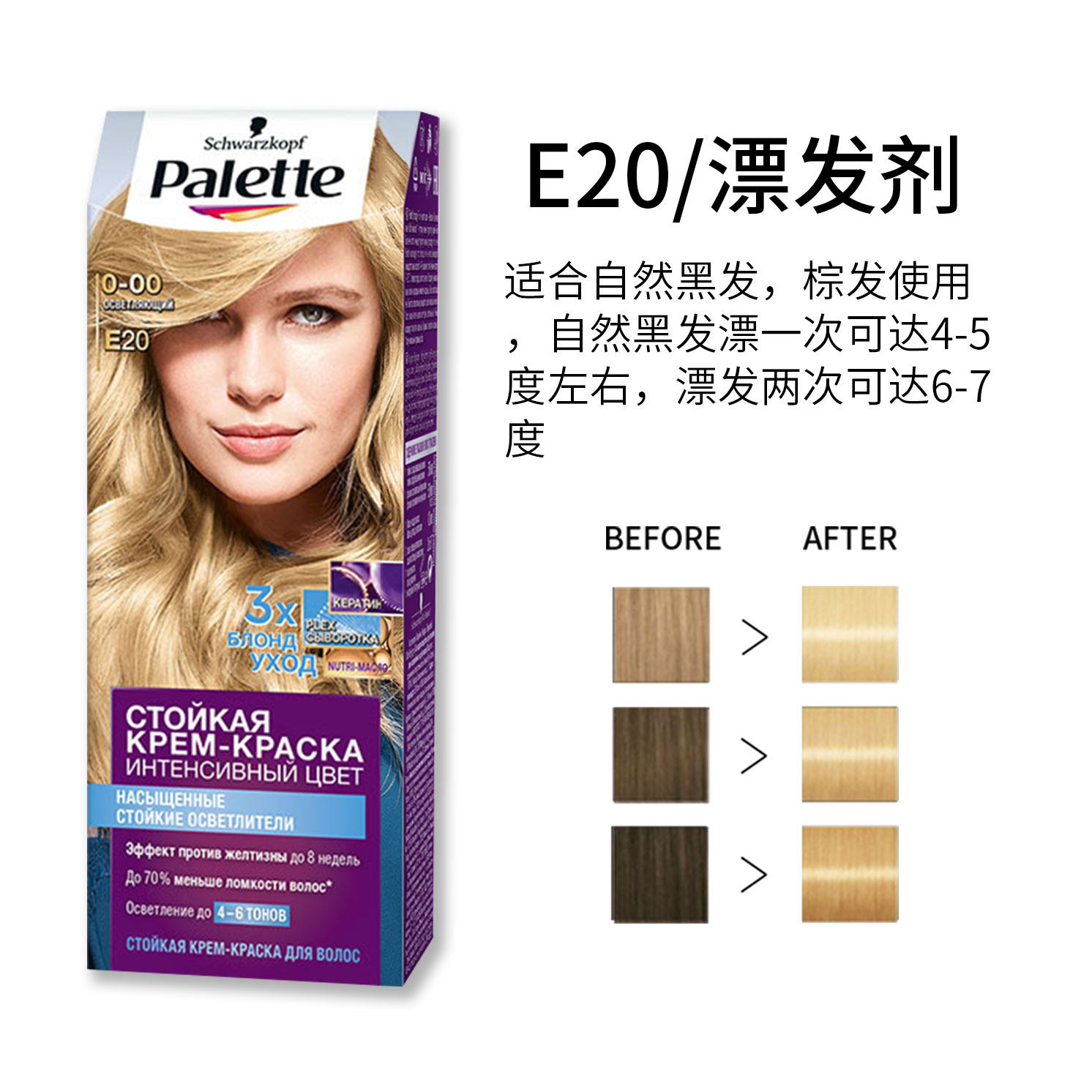 📚 俄罗斯palette施华蔻漂发剂褪色剂漂白剂褪色膏白金发漂发9度去黄