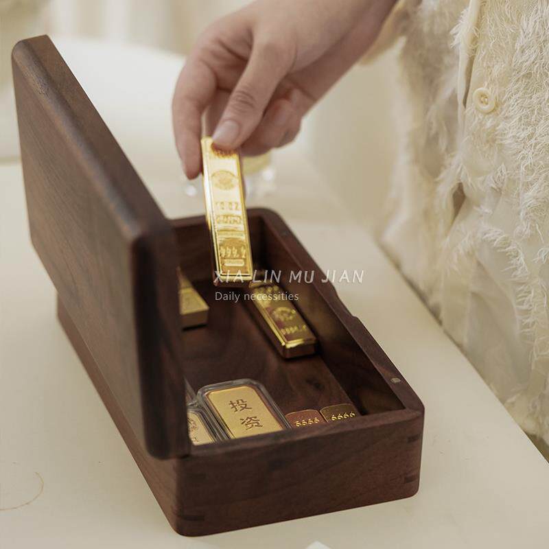 📚 黑胡桃木金条收纳盒存工行建行10克20g黄金首饰投资专用高档精致