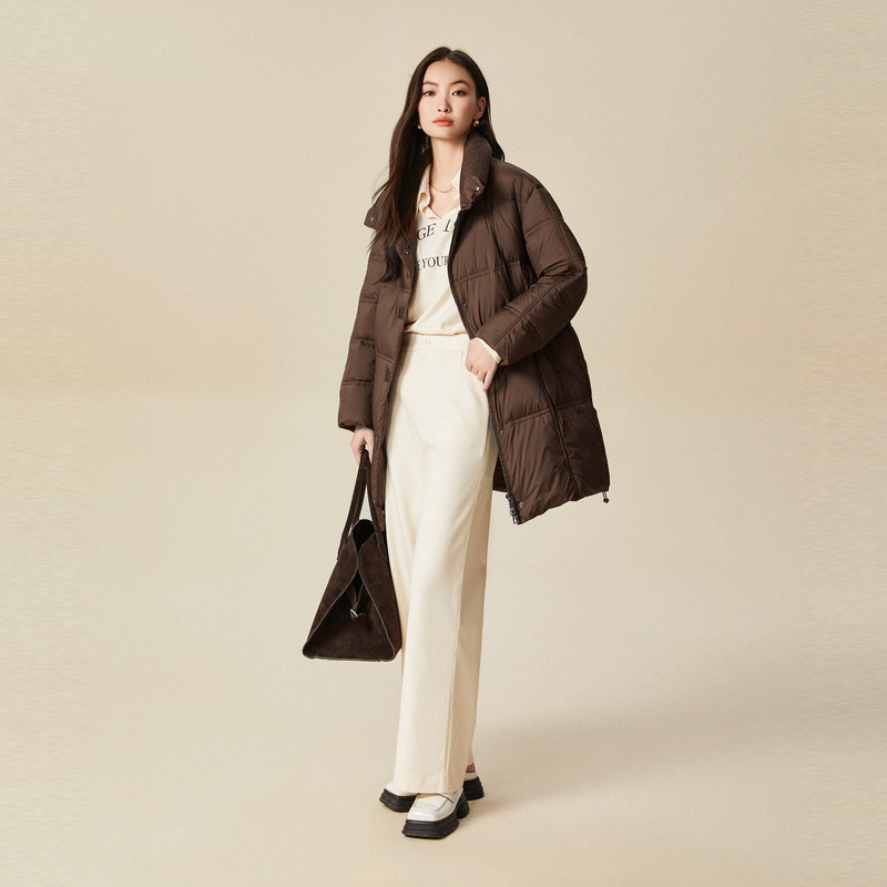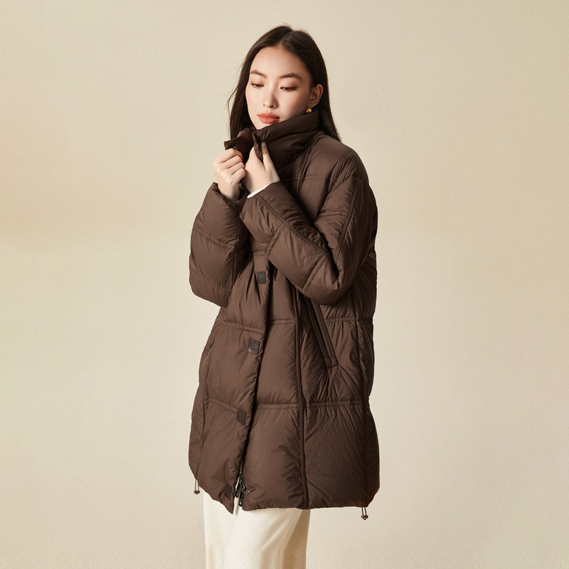 📚 XG雪歌咖色长袖白鸭绒羽绒服时尚冬季新款中长款通勤保暖外套女装