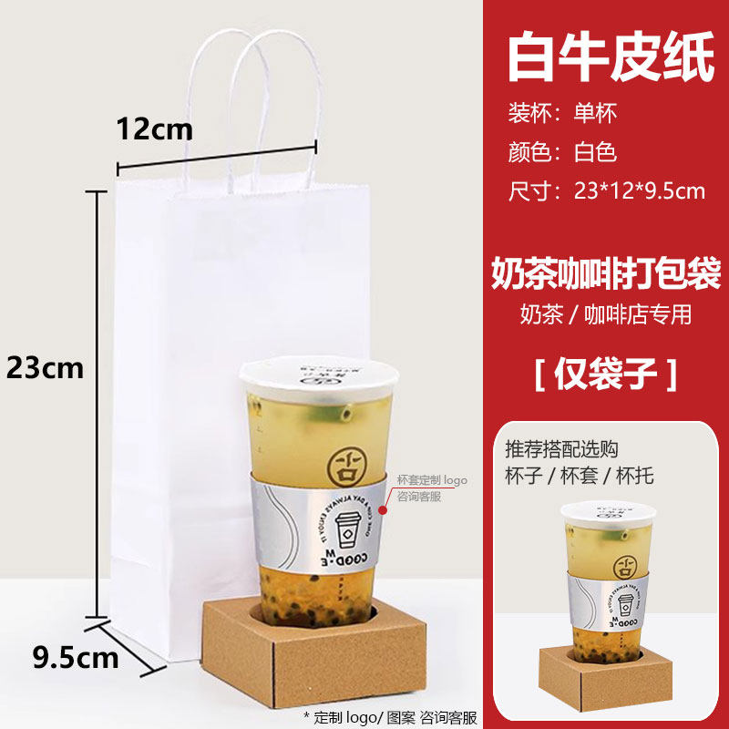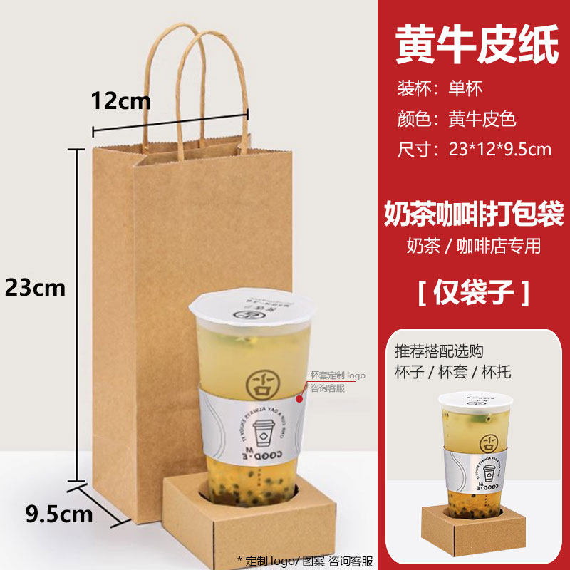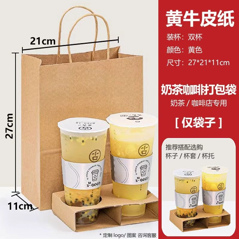 📚 奶茶咖啡牛皮纸袋手提袋定制logo打包单杯/双杯白牛皮/黄牛皮纸袋