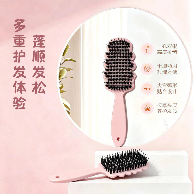 📚 松塔猪鬃护发梳发顶蓬松神器按摩头部顺发排骨梳网红梳子儿童女用