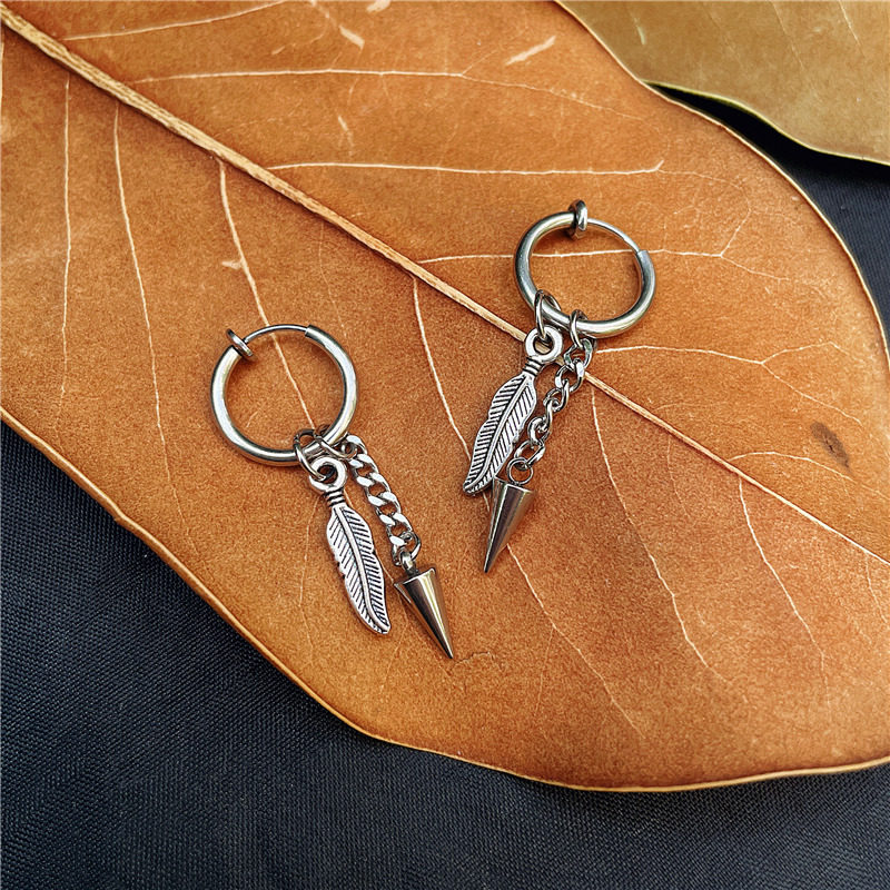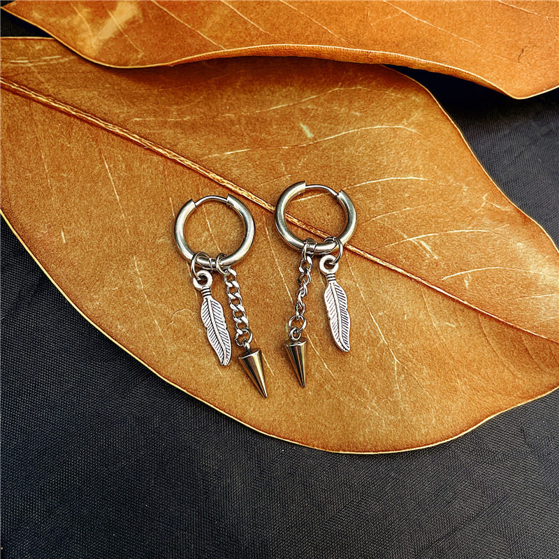 📚 ENHYPEN李羲承同款耳环耳饰潮男女 韩国小众羽毛锥形钛钢耳钉单只
