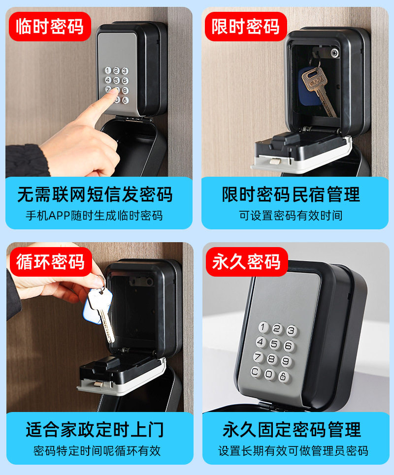 📚 智能通通锁蓝牙APP密码盒壁挂式防水门禁钥匙盒民宿临时密码锁盒