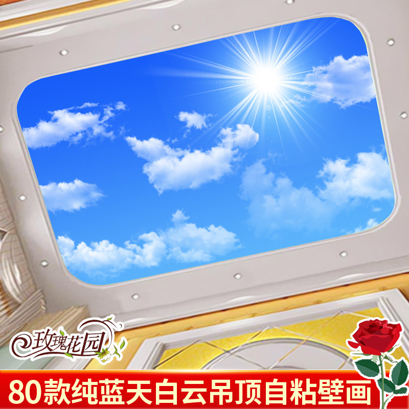 📚 天花板吊顶壁纸自粘墙纸3d立体壁画创意贴画贴纸蓝天白云天空装饰